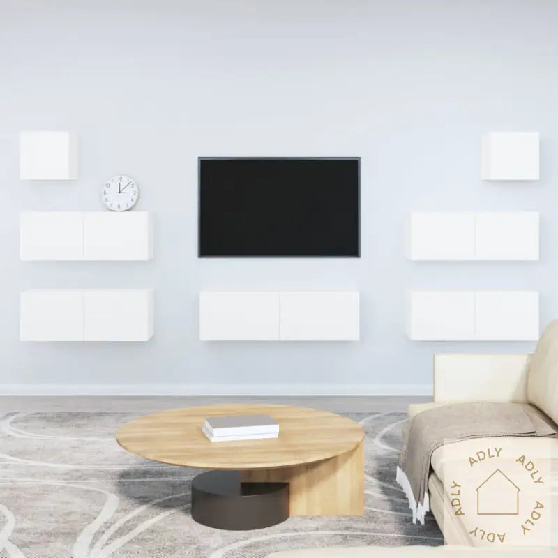 Skrue(r) og plugg(er) for å feste møbelet i veggen følger ikke med. Bruk festemidler som passer til akkurat din veggtype for trygg montering. Hvis du er usikker, kontakt fagfolk før montering. Husk å følge monteringsinstruksene nøye for best mulig resultat.Monteringsveiledning ligger vedlagt i esken, slik at monteringen går så smidig og raskt som mulig.Farge: HvitMateriale: Konstruert treLeveransen inneholder:2 x TV-benker: 80 x 30 x 30 cm (L x B x H)1 x TV-benk: 100 x 30 x 30 cm (L x B x H)2 x TV-benker: 30,5 x 30 x 30 cm (L x B x H)