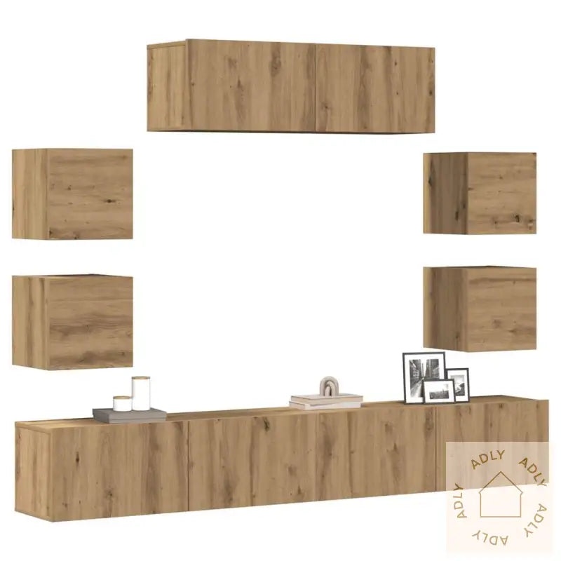- Stabil og solid bordplate: Den robuste platen i artisan eik gir trygg plassering for TV-en, stereoanlegg eller pynt som vaser og grønne planter. Overflaten er laget for å tåle daglig bruk, samtidig som den gir et lunt og innbydende preg til rommet.