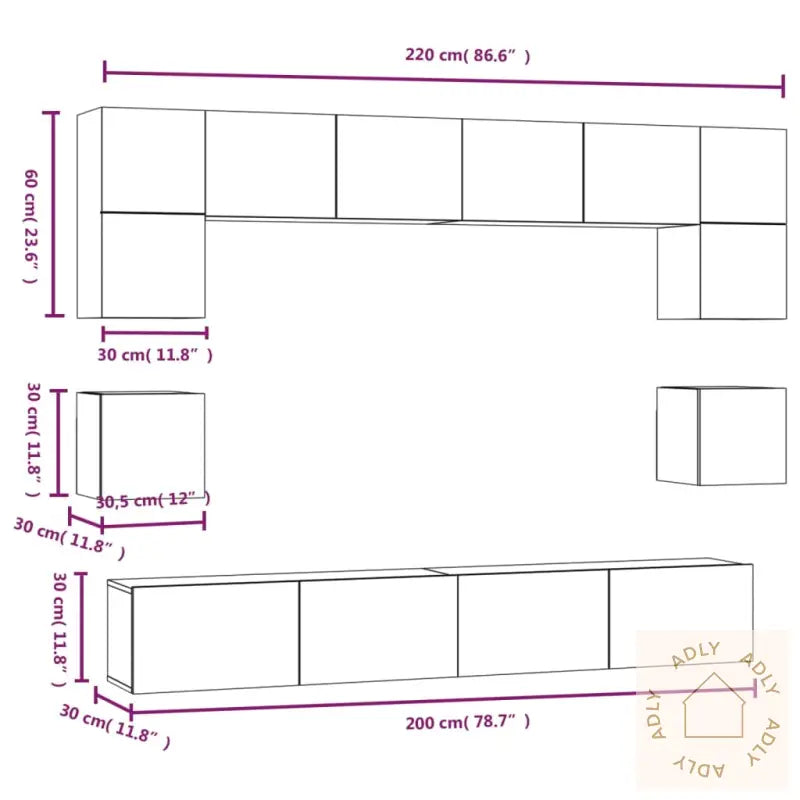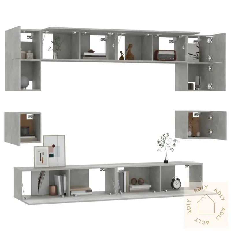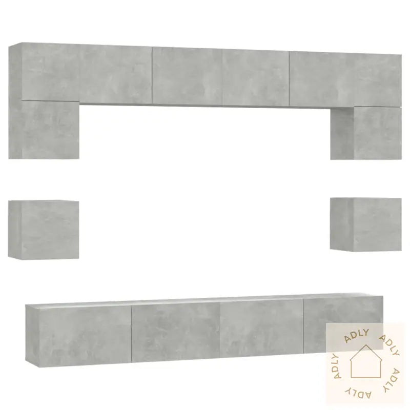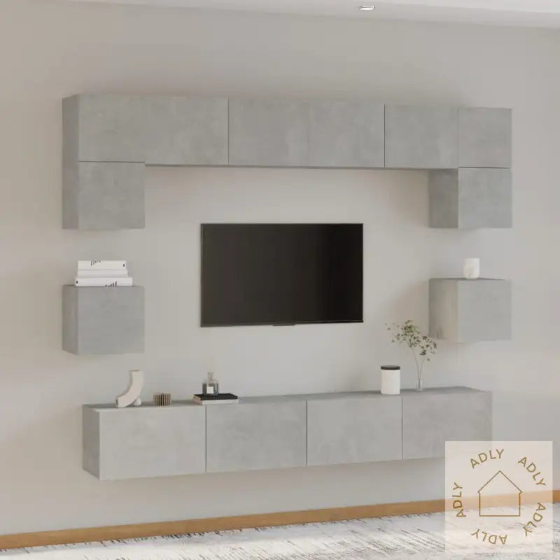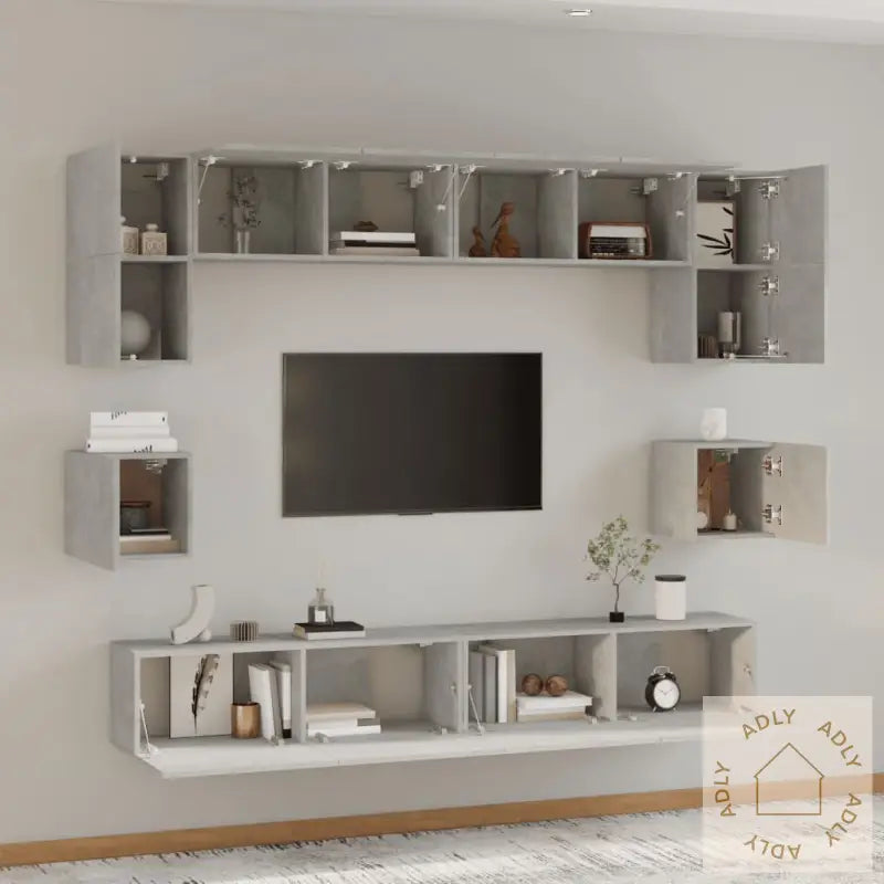 Skruer og plugger til veggmontering følger ikke med. Sørg for å bruke riktig type for dine vegger, og ta kontakt med fagfolk hvis du er usikker. Følg monteringsanvisningen nøye for å sikre trygg og stabil installasjon.Alle produkter leveres med en detaljert monteringsveiledning i esken, så du enkelt får satt sammen møblene dine.Farge: Betonggrå – en moderne og tidløs nyanse som matcher ulike typer hagemøbler, møbler eller utendørsmøbler i hjemmet.Materiale: Konstruert tre gir deg robuste og holdbare møbler.Pakken inneholder:2 x TV-benker: 60 x 30 x 30 cm (B x D x H)2 x TV-skap: 80 x 30 x 30 cm (B x D x H)2 x TV-skap: 100 x 30 x 30 cm (B x D x H)2 x TV-benker: 30,5 x 30 x 30 cm (B x D x H)