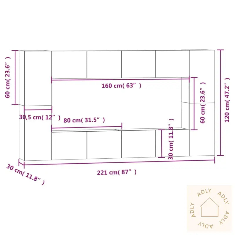 Solid materiale: Settet er laget av konstruert tre, et slitesterkt og stabilt materiale som både ser bra ut og tåler daglig bruk. Med en glatt overflate og motstandsdyktighet mot fuktighet, får du møbler som holder lenge samtidig som de er enkle å holde rene.Rikelig med lagringsplass: Her får du god plass – hver TV-benk tilbyr romslige hyller og skap for å organisere alt fra magasiner og DVD-er, til ulike elektroniske enheter og småting. Dette gjør det enkelt å skape orden i rommet ditt.Veggmontert design: Disse TV-enhetene monteres rett på veggen, noe som gir et moderne og luftig uttrykk. Du frigjør gulvplass og får en mer åpen følelse i stua. Perfekt for mindre rom eller når du vil ha en minimalistisk look.Merk: