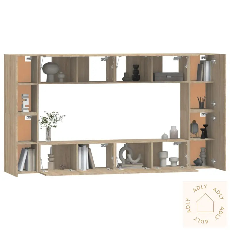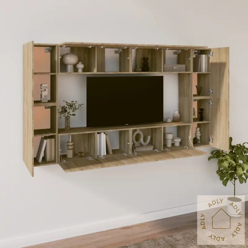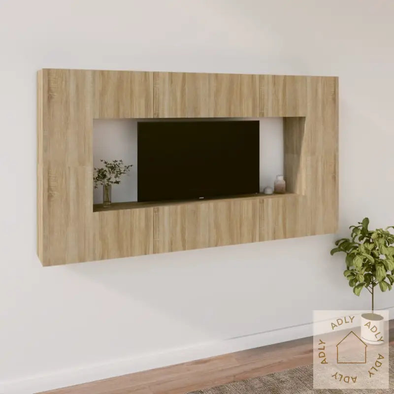 Skrue(r) og plugg(er) til montering i veggen følger ikke med. Sørg for å velge riktig tilbehør som passer til veggtypen hjemme, eller spør fagfolk hvis du er i tvil. Husk å lese gjennom og følge instruksjonene nøye for sikkert og enkelt oppsett.Alle produktene leveres med tydelig monteringsveiledning for en smidig og rask montering.Farge: sonoma eik – en tidløs finish som passer til det meste av hagemøbler og andre møbler i hjemmet, og gir et naturlig, elegant preg.Materiale: konstruert treLeveransen inkluderer:4 x TV-skap: 80 x 30 x 30 cm (B x D x H)4 x TV-benker: 30,5 x 30 x 60 cm (B x D x H)