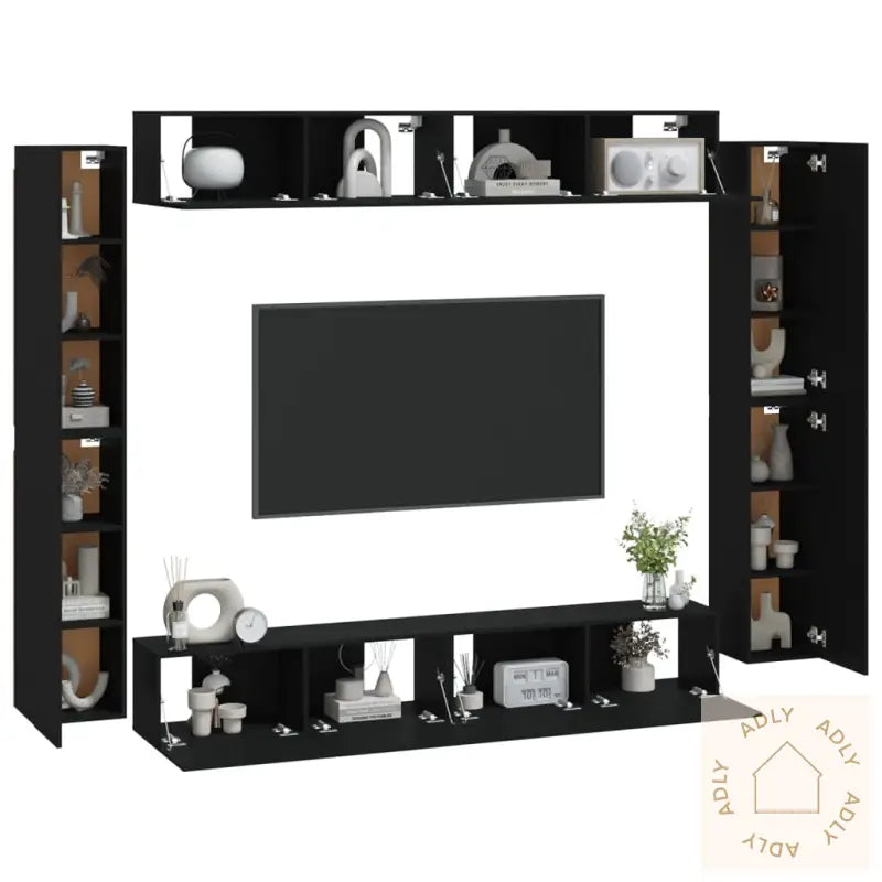 Skrue(r) og plugg(er) for festing i veggen følger ikke med i pakken. Det er viktig å bruke festemateriell som passer til din type vegg. Ved usikkerhet, anbefales det å rådføre seg med en fagperson. Følg instruksjonene i monteringsveiledningen nøye for best resultat.Alle produkter leveres med en detaljert monteringsveiledning for en enkel og trygg montering.Farge: svartMateriale: konstruert trePakken inneholder:4 x TV-benker: 100 x 30 x 30 cm (B x D x H)4 x TV-benker: 30,5 x 30 x 90 cm (B x D x H)