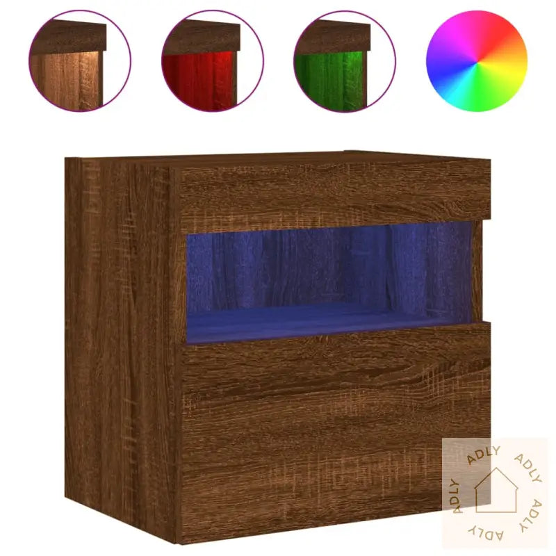 Slitesterkt materiale: TV-benken er laget av konstruert tre i høy kvalitet, som gir en jevn overflate samtidig som det er robust, stabilt og tåler fukt. Dette gjør at du får et møbel som holder seg pent i lang tid – et viktig valg når du vil ha slitesterke møbler til hjemmet.RGB LED-lys: Skapet har innebygde RGB LED-lys som gir friske farger du enkelt kan endre med forskjellige menyer. Du kan også sette lysene til å justere seg automatisk, noe som gir en kul effekt og fremhever det trendy, moderne uttrykket. Dette løfter gjerne atmosfæren i rommet, perfekt for dem som ønsker stilige detaljer med gjennomtenkt belysning.Rikelig med lagringsplass: Den vegghengte løsningen gir god oppbevaringsplass til småting som bøker, DVD-er og magasiner, slik at du alltid har det du trenger innen rekkevidde uten at det ligger og flyter.Allsidig: Skapet passer ikke bare som TV-benk, men fungerer også supert som vegghengt nattbord. Kombiner gjerne flere sammen for å skape en flott og funksjonell vegg. Perfekt for deg som vil leke med design og ønsker fleksible møbler til hjemmet.Veggmontert design: Med den veggmonterte utformingen får du ekstra lagringsplass og friere gulv – ideelt for mindre rom eller for deg som bare vil ha det litt luftigere rundt deg.Godt å vite: