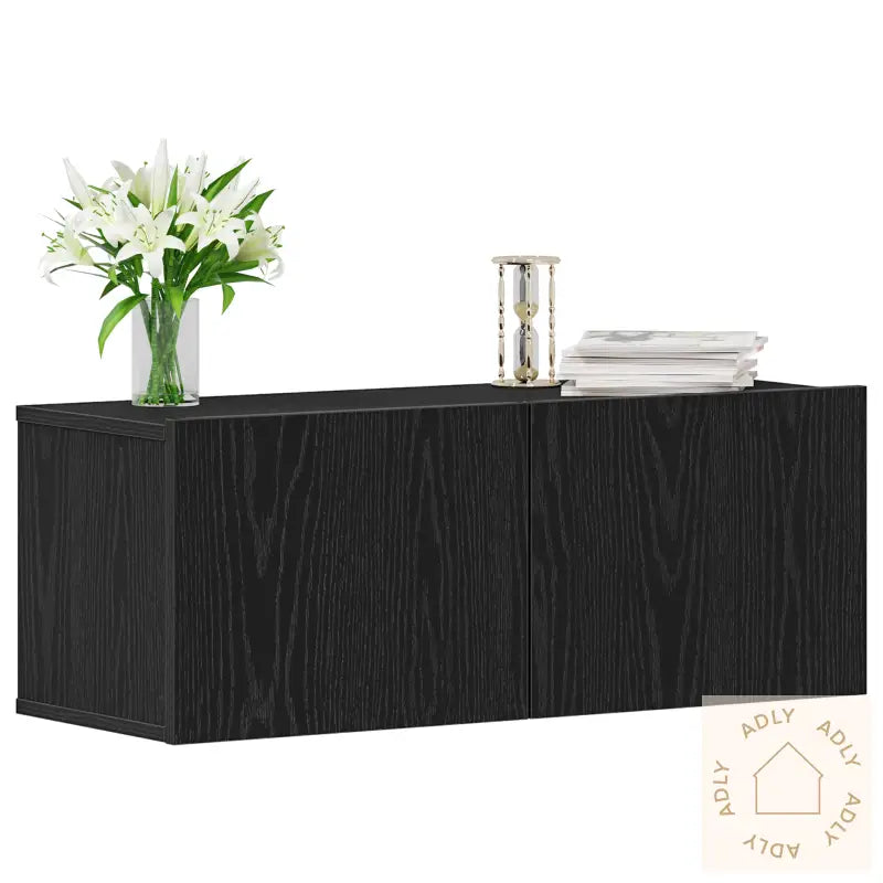 Stilig design: Den matte svarte finishen passer lett inn med ulike interiørstiler og gir et trendy uttrykk med svart eik-look.Plassbesparende: Veggmonteringen gjør at skapet ikke opptar verdifull gulvplass, så du kan lettere rengjøre og få en mer åpen følelse i stuen.Holdbart materiale: Produsert i konstruert tre som både er slitesterkt, lett å vedlikeholde og gir skapet lang levetid.God lagringsplass: To dører åpner opp til romslige hyller, som gir deg praktisk plass til alt av medieutstyr, bokhyller og stående hyller, spill eller personlige eiendeler.Praktisk størrelse: Med målene 80 x 30 x 30 cm får du skap som lett passer under TV-en uten å ta unødvendig plass – diskret, men samtidig romslig.Farge: SvartForm: RektangulærMateriale: Konstruert treFinish: MattInnendørs/Ute: Kun innendørsAntall dører: 2Deksel inkludert: NeiRom: StueMonteringssett inkludert: JaDimensjoner: 80 x 30 x 30 cm (L x B x H)Overflatehøyde: 30,5 cmStige: NeiMerke: Leveransen inneholder: 2 TV VeggskapMontering kreves: JaAnbefalt antall personer for montering: 2