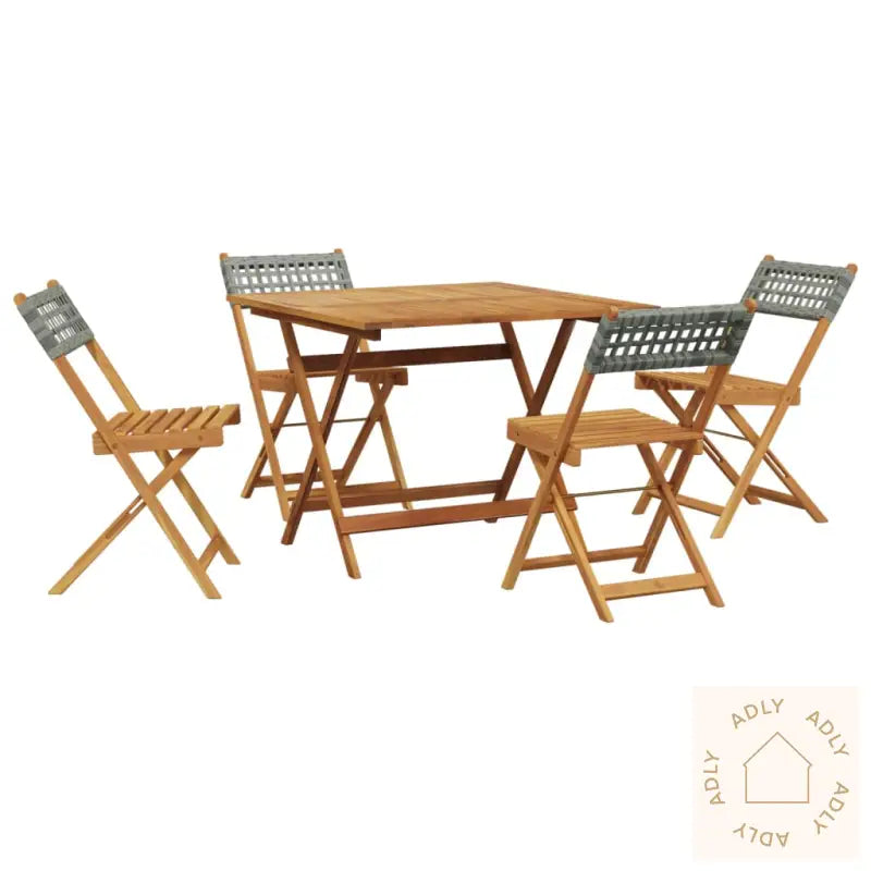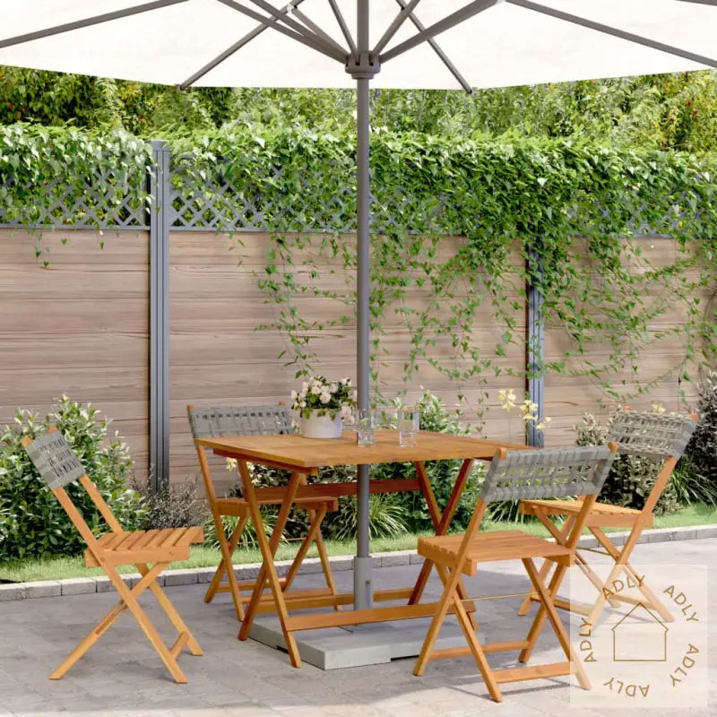Robust og stabil: Heltre akasie utmerker seg med både styrke og lang holdbarhet – et naturlig materiale som har unike farger og kornmønstre for et eksklusivt uttrykk i dine hagemøbler. Det er godt egnet til skandinavisk klima, da treverket tåler vær og vind. Perfekt for deg som vil ha holdbare møbler til hjemmet og uteområdet med en naturlig følelse.Slitesterkt materiale: PE-rotting (polyrotting) gir samme elegante utseende som naturrotting, men tåler langt mer – det er vedlikeholdsfritt, lett å rengjøre og motstandsdyktig mot sol og regn. Materialet er populært i moderne hagemøbler fordi det varer lenge uten å miste utseendet. Passer perfekt for deg som ønsker praktiske utemøbler med minimalt vedlikehold.Praktisk design: Stolene uten armlener gir deg fri bevegelse og gjør det enkelt å trekke stolen inn til bordet eller sette seg ned. Samtidig sørger den solide ryggstøtten for komfort når du vil sitte lenge rundt bordet.Stabil bordplate: Bordplaten gir solid støtte for både mat, drikke, fruktfat eller dekorasjoner – her har du plass til alt du trenger for hyggelige stunder utendørs. Parasollhullet gjør det enkelt å beskytte seg mot solen på varme dager.Sammenleggbart design: Hele settet kan foldes sammen, slik at du raskt rydder unna møblene når de ikke er i bruk. Smart hvis du har begrenset plass eller vil enkelt oppbevare møblene gjennom vinteren.For å holde dine hagemøbler fine over tid anbefaler vi å bruke et vanntett trekk som ekstra beskyttelse mot regn og snø.