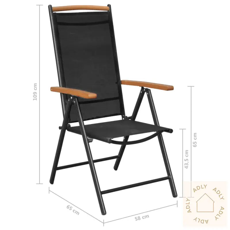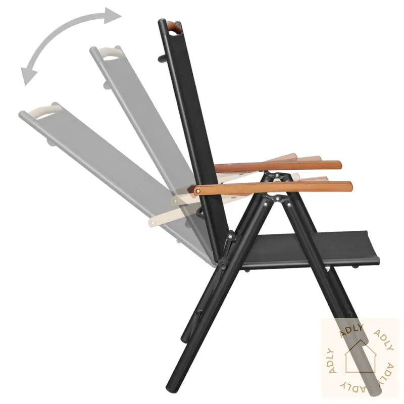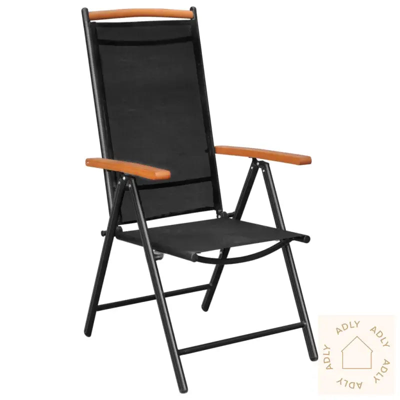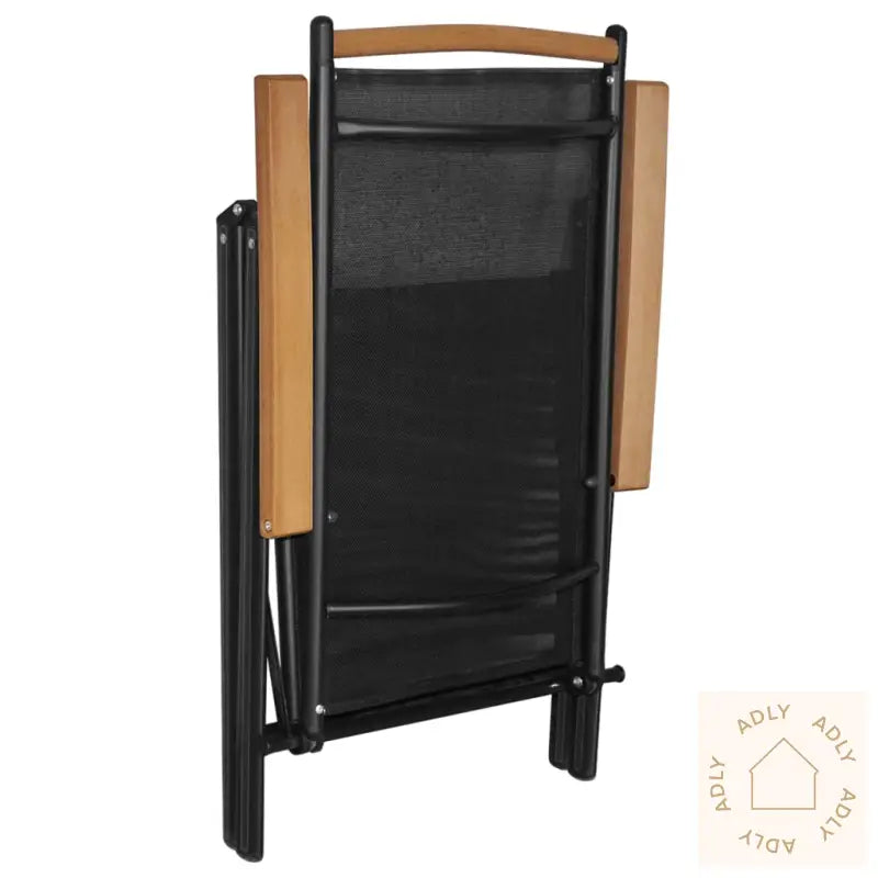 Spisestuen har en robust ramme i pulverlakkert aluminium, som gir økt slitestyrke og gjør at møblene tåler norsk vær godt gjennom sesongen. Stolene i settet har myke seter og ryggstøtter i textilene, et luftig og behagelig materiale som puster godt og gir komfort også på varme dager. Ryggstøtten kan stilles inn i 7 ulike posisjoner, slik at du enkelt kan tilpasse sittestillingen etter humør og behov – enten du nyter en lang middag eller bare ønsker å lene deg tilbake. Stolenes svarte armlener og elegante toppstang gir både støtte og et ekstra stilfullt uttrykk. For å spare plass kan lenestolene brettes sammen når de ikke brukes – perfekt for deg som har behov for fleksible og funksjonelle møbler til hjemmet.