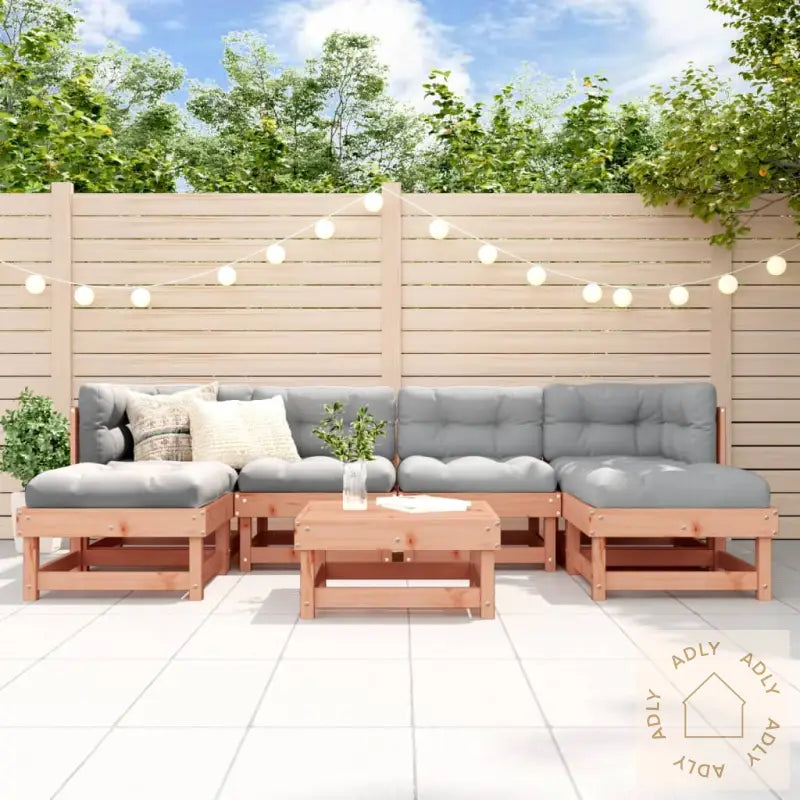 Puter er ikke inkludert, men vi anbefaler å tilføye noen myke puter for økt komfort og personlig stil.For å bevare utseendet på møblene lengst mulig, anbefaler vi å bruke et vanntett trekk når de ikke er i bruk.Materiale: heltre douglasgran (ubehandlet)Materiale lameller: kryssfinerMål hjørnesofa: 61 x 61 x 62 cm (L x B x H)Mål midtsofa: 61 x 61 x 62 cm (L x B x H)Mål fotskammel/salongbord: 61 x 60,5 x 30 cm (L x B x H)Maksimal lastekapasitet (per sete): 110 kgMontering kreves: jaLeveransen inneholder:2 x hjørnesofaer2 x midtsofaer3 x hagefotskammel/sofabord
