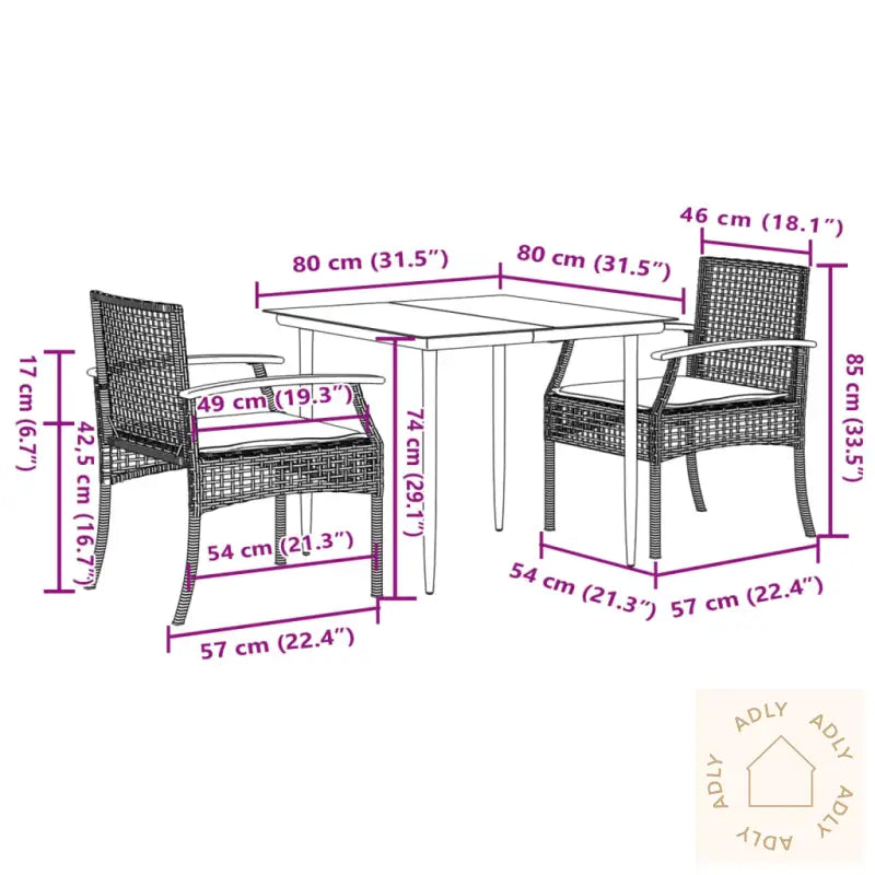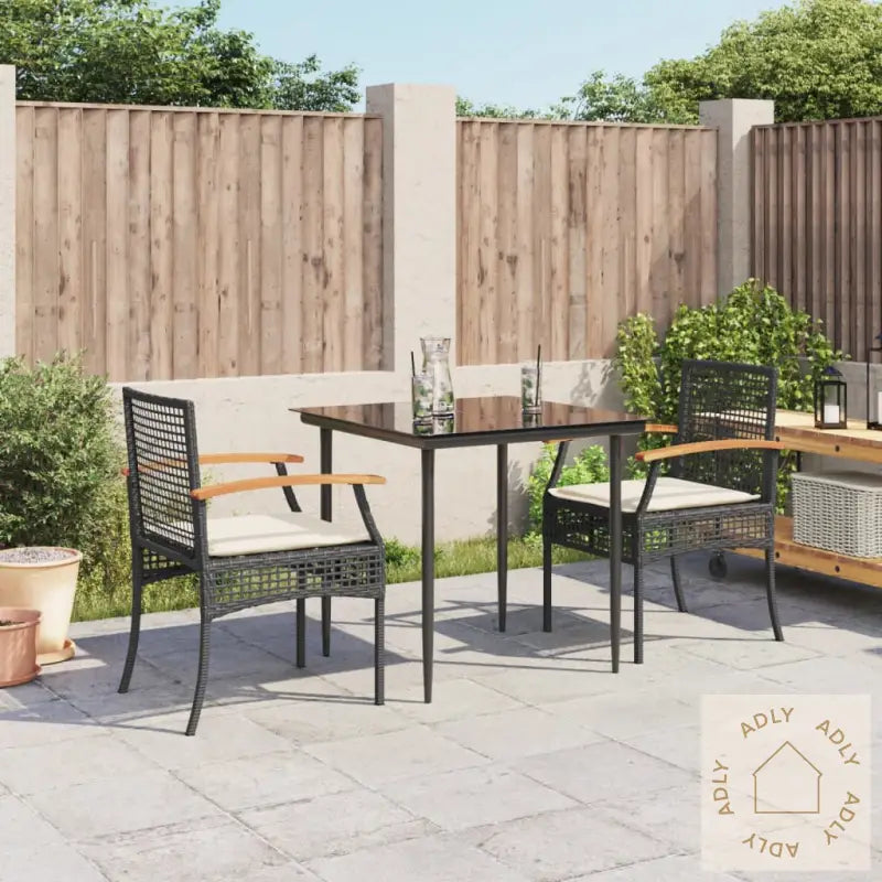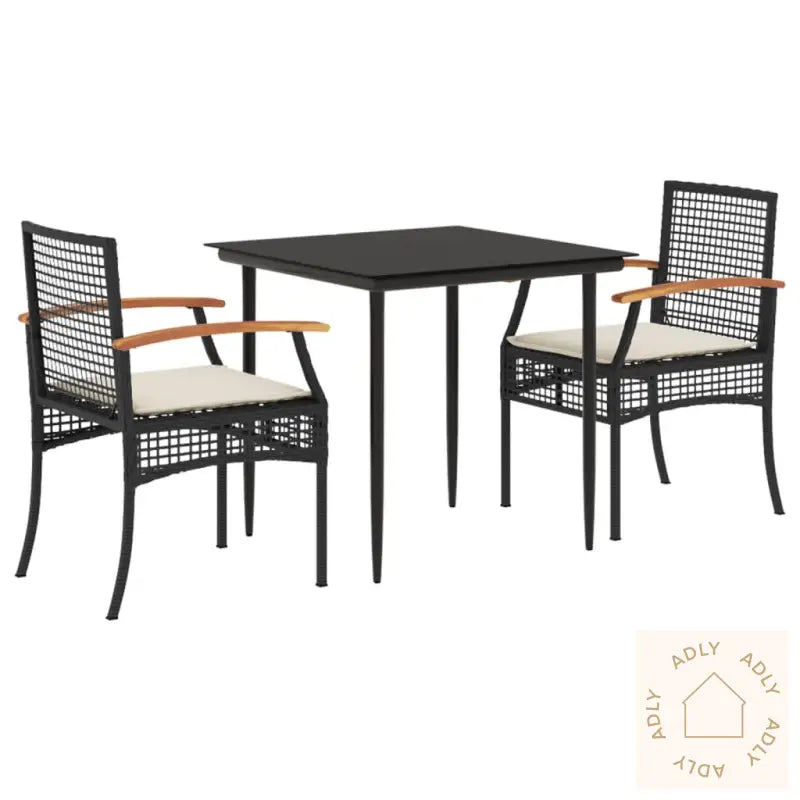 For å sikre at utemøblene dine beholder skjønnheten sin, anbefaler vi å bruke vanntett trekk for optimal beskyttelse mot regn og fukt.Maksimal lastekapasitet (per sete): 110 kgUV-bestandigMontering kreves: jaBord:Farge: svartMaterialer: pulverlakkert stål, herdet glassMål: 80 x 80 x 74 cm (L x B x H)Stol:Farge: svartMaterialer: PE-rotting, pulverlakkert stål, heltre akasie med oljefinishMål: 54 x 57 x 85 cm (B x D x H)Mål sete: 46,5 x 49 cm (B x D)Høyde sete fra bakken: 42,5 cmHøyde armlene fra bakken: 59,5 cmPute:Farge: kremhvitMateriale trekk: stoff (100% polyester)Materiale fyll: skumMål stolpute: 46 x 48 x 3 cm (B x D x T)Leveransen inneholder:1 x hagebord2 x hagestolerAvtakbar pute med avtagbart og vaskbart trekk