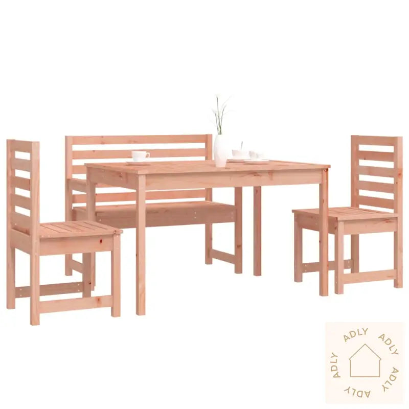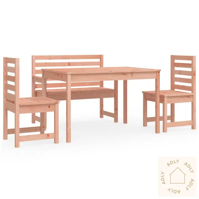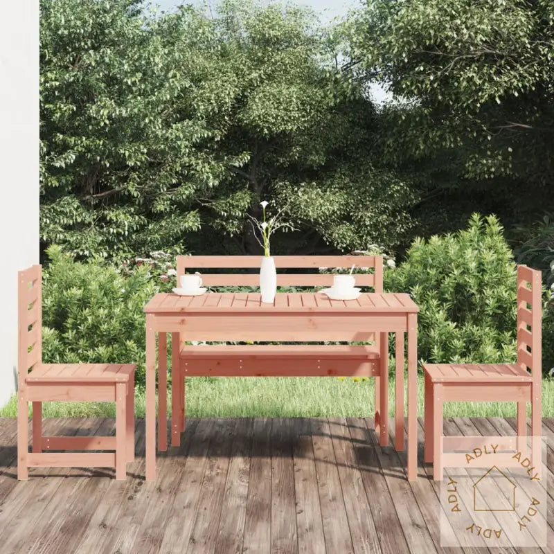 Denne klassiske utendørs spisestuen i heltre douglasgran passer perfekt for utendørs bruk og er designet for å bli et naturlig midtpunkt enten du plasserer den i hagen, på terrassen eller uteplassen. Det tidløse uttrykket gjør at settet glir sømløst inn uansett stil og omgivelser.