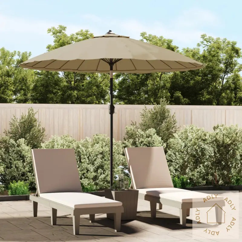 Parasollen er laget av polyesterstoff som både beskytter mot UV-stråler og er anti-falmende, så den holder seg pen gjennom flere sommersesonger. I tillegg er stoffet enkelt å vaske av, noe som gjør vedlikeholdet minimalt. Den solide aluminiumsstangen og de 24 slitesterke spilene sørger for stabilitet og lang holdbarhet, selv om det skulle blåse litt. Sveivemekanismen gjør at du lett kan åpne og lukke parasollen uten anstrengelse – superpraktisk når solen flytter seg på himmelen eller skyggelagte behov endres. Dette gir ekstra verdi om du allerede har møbler eller hagemøbler stående på terrassen.