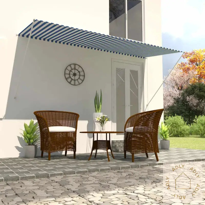 Markisen er vannavvisende og motstandsdyktig mot både UV-stråler og vær, takket være det slitesterke polyesterstoffet med PA-belegg. Den flotte blå- og hvitstripete duken gir et friskt uttrykk, og stoffet kan enkelt tas av for vask når det trengs. Rammen er laget av kraftig stål, noe som gir stabilitet og lang levetid – nyttig når du vil ha solide møbler til hjemmet utendørs.