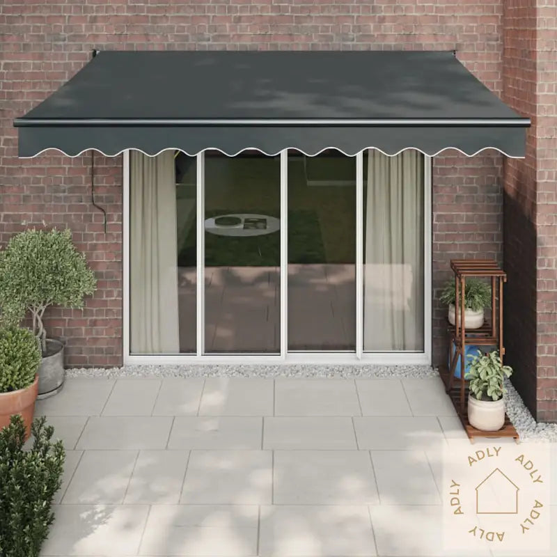 Slitesterkt materiale: Rammen til markisen er laget av pulverlakkert aluminium, et robust og rustbestandig materiale som holder seg pent over tid. Selve duken er laget av polyesterstoff (100%) med PU-belegg, slik at stoffet tåler både UV-stråler og værpåvirkning. Det gir effektiv beskyttelse for deg, familien og gjestene dine mot sterke solstråler – perfekt for lange sommerdager utendørs.Uttrekkbar markise: Denne smarte uttrekkbare markisen lar deg enkelt tilpasse skygge etter behov. Dra markisen ut for å sikre sval skygge på varme dager, og trekk den inn når du ønsker å slippe inn mer lys eller vil ha fritt utsyn utover uterommet ditt.Veggmontert design: Markisen monteres lett direkte på veggen ved hjelp av de medfølgende veggbrakettene. Dette betyr at du får maksimalt ut av plassen på terrassen eller balkongen, uten at markisen tar opp unødvendig gulvplass – ideelt også for små uteområder.Bredt bruksområde: Designet er minimalistisk og moderne, slik at denne uttrekkbare markisen passer like godt til private hjem og uterom som til kommersielle lokaler, restauranter, kafeer eller butikker. Den er et flott tilskudd både for deg som leter etter praktiske møbler til hjemmet og deg som ønsker helhetlige utemiljøer med stilige hagemøbler.Farge: AntrasittRamme materiale: Pulverlakkert aluminiumMaterialer markise: Stoff (100% polyester) med PU-beleggStørrelse: 3,5 x 2,5 m (L x B)Montering kreves: JaLeveransen inneholder:1 x markise1 x ramme