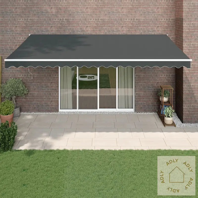 Markisens ramme består av slitesterkt, pulverlakkert aluminium – et robust materiale som tåler både daglig bruk og værforhold, samtidig som det ser moderne ut. Selve markiseduken er laget av 100% polyester med PU-belegg, noe som gir høy beskyttelse mot UV-stråler og sollys. Her kan du føle deg trygg på at både familie og gjester får optimal skjerming mot solen.Som en praktisk uttrekkbar markise kan du lett justere lengden etter behov. Få kjølende skygge akkurat der du vil, uten å miste utsikt eller å dekke til mer enn nødvendig. Det er enkelt å finne den perfekte balansen mellom lys og skygge på varme dager.Vegghengt design gjør at denne terrassemarkisen ikke tar opp gulvplass, og den monteres raskt opp med de medfølgende veggbrakettene. Det gir deg mer plass til utemøbler og maksimerer området på terrassen eller balkongen din.Tidløst antrasitt stoff og enkel, moderne stil gjør markisen velegnet for både hjemmemiljø og offentlige steder. Den passer like godt til balkong, terrasse, hage, kafeer, restauranter, butikker og flere steder der du ønsker å kombinere elegant skygge med praktisk funksjon – et smart valg sammen med hagemøbler eller som møbler til hjemmet for å skape en lun atmosfære.Farge: AntrasittRamme materiale: Pulverlakkert aluminiumMaterial markise: Stoff (100% polyester) med PU-beleggStørrelse: 5 x 3 m (L x B)Montering kreves: JaLeveransen inneholder:1 x Uttrekkbar markise1 x Ramme