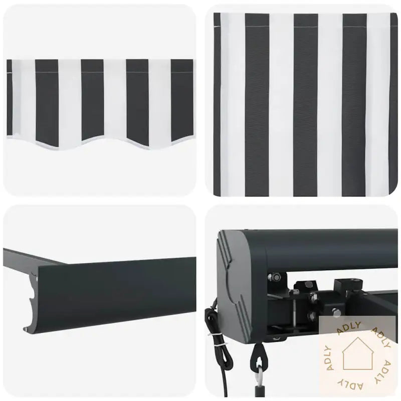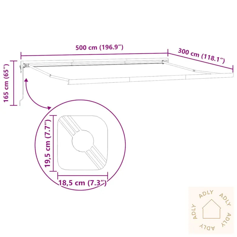Det robuste stativet er laget i hvit pulverlakkert aluminium, noe som gir høy slitestyrke og lang levetid selv ved mye bruk utendørs. Stoffet er i antrasitt polyester (100% polyester) med PU-belegg, og tåler både sol og regn. Med UV-beskyttelse skjermer denne uttrekkbare markisen familien din og gjestene dine mot solens sterke stråler og gir en behagelig plass i skyggen.Markisen trekkes enkelt ut og inn etter behov, så du kan justere mengden skygge når solen flytter seg gjennom dagen. Det gir deg fleksibilitet uten at det ødelegger utsikten fra terrassen eller balkongen.Med sitt veggmonterte design tar ikke markisen unødvendig plass på bakken, og den er enkel å montere med medfølgende veggbraketter. Kombiner den gjerne med andre hagemøbler for å lage en fullendt og funksjonell uteplass.Den uttrekkbare markisen har et moderne og diskret utseende som glir naturlig inn både til private hjem og kommersielle områder. Uansett om du trenger solskjerming til balkong, terrasse, hage, restaurant eller butikk, er dette et fleksibelt valg for deg som vil ha mer ut av uterommet. Passer like godt sammen med ulike møbler til hjemmet.Markise:Farge: antrasitt og hvitStoffmateriale: 100% polyester med PU-beleggMål: 5 x 3 m (L x B)Ramme:Farge: hvitMateriale: pulverlakkert aluminiumMål: 497 x 300 cm (L x B)Spenning: 230 V, 50 HzEffekt: 226 WMoment: 40 NmHastighet: 13 rpmMontering kreves: jaLeveransen inneholder:1 x uttrekkbar markise1 x ramme