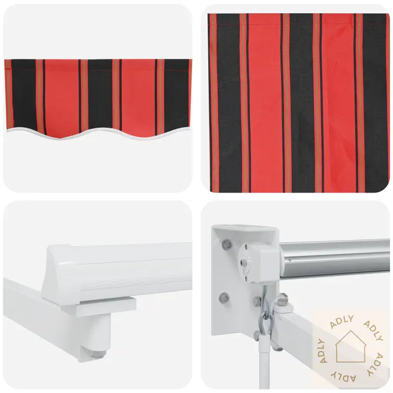 Farge: Rød Mønster: Stripete (parallelle linjer i ulike bredder og farger)Form: RektangulærMateriale: Metall (aluminium)Finish: Vanntett coatingInnendørs/Utendørs: Kun utendørsRom: Garten und TerrassegMaksimalt antall personer: 5Merke: Leveransen inneholder: Markise, støttestengerMontering påkrevd: Nei