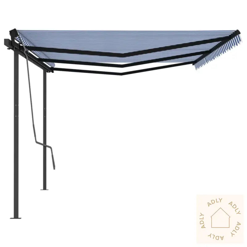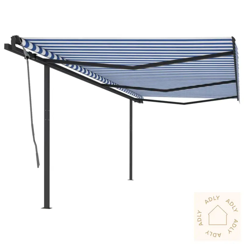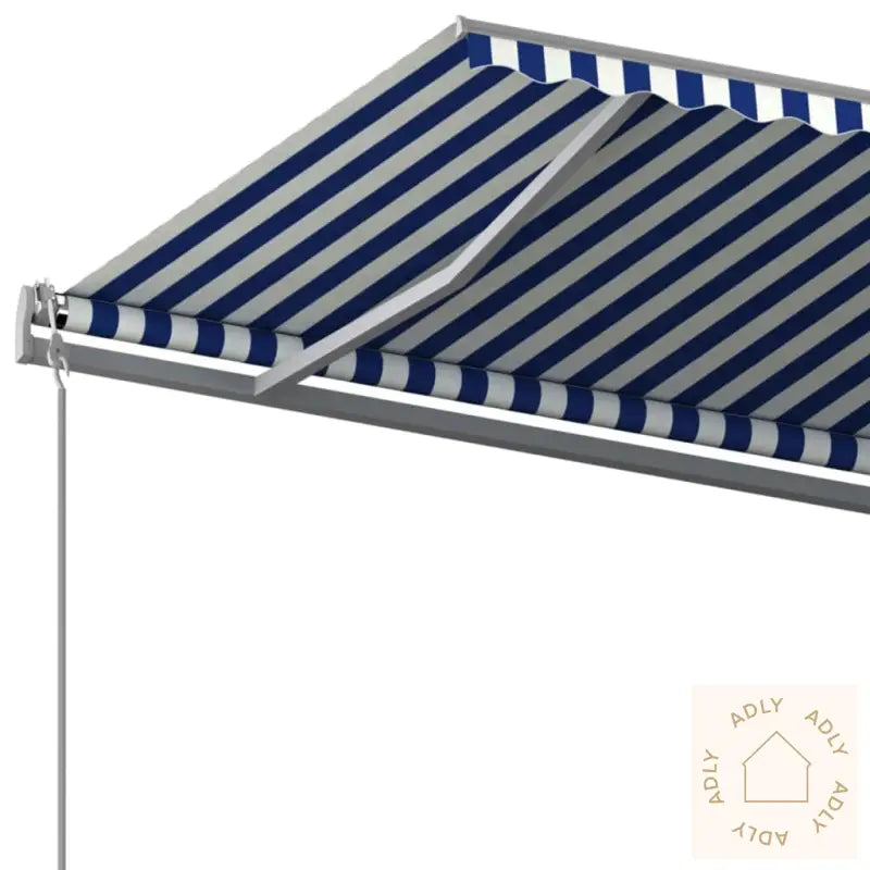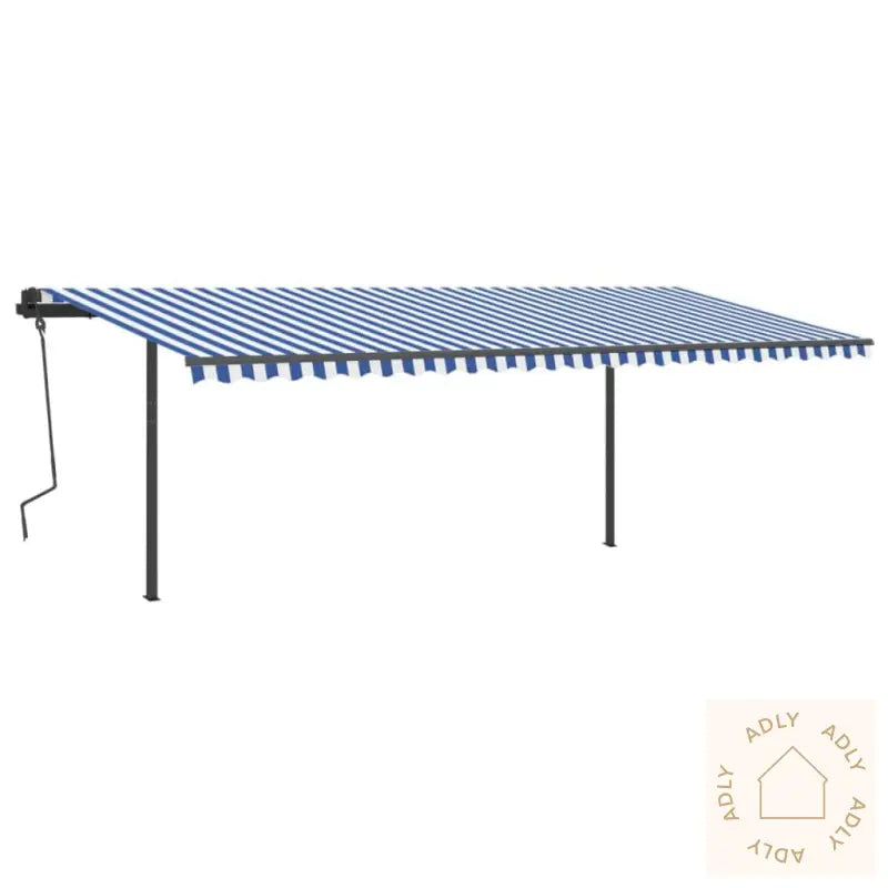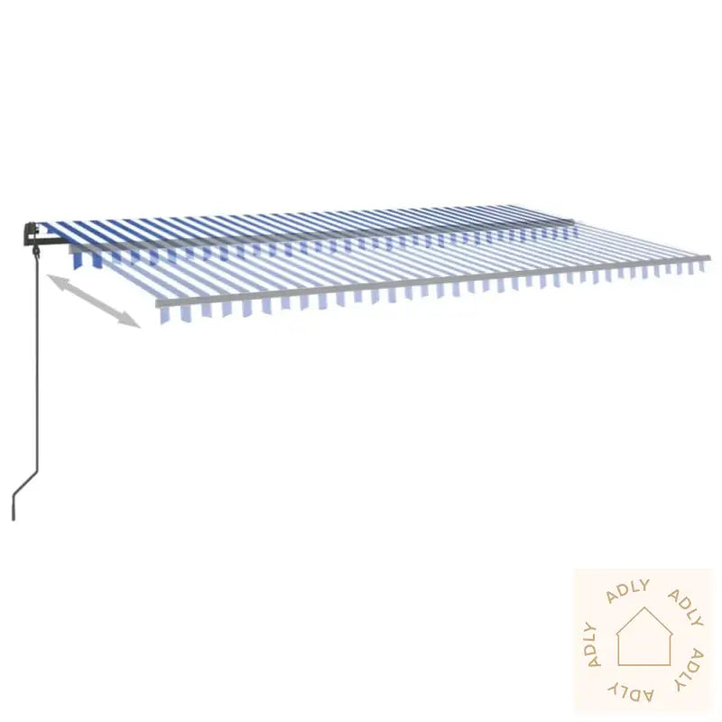 Farge stoff: blå og hvitFarge ramme: antrasittMaterialer: pulverlakkert aluminium, jern, stoff (100% polyester) med PU-beleggSamlet mål: 600 x 300 cm (L x B)Mål stolpe: 600 x 245 cm (B x H)Montering kreves: ja