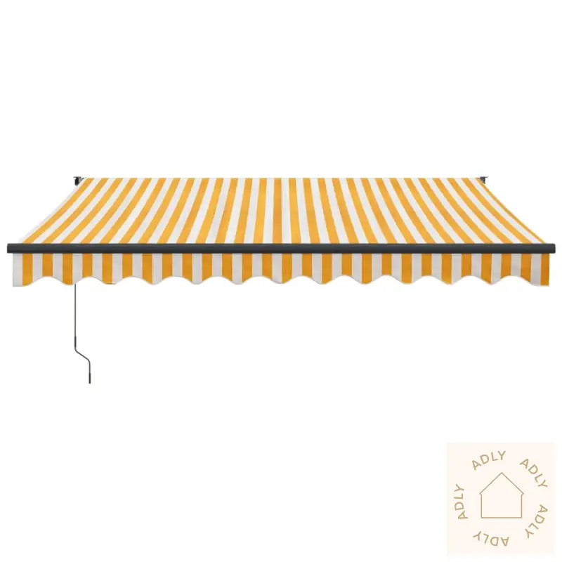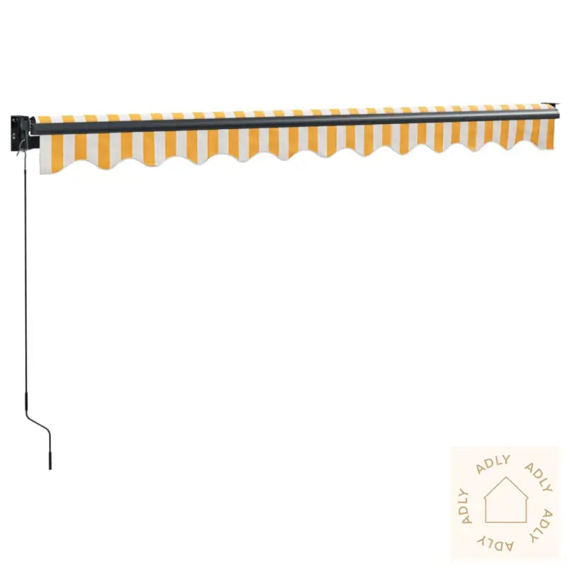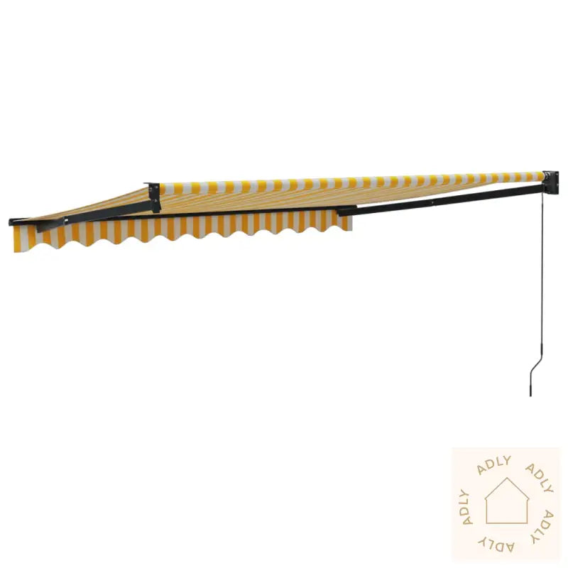 Markisens ramme er laget av pulverlakkert aluminium, noe som gir ekstra styrke og lang levetid. Dette robuste materialet tåler tøffe værforhold og passer perfekt blant dine andre hagemøbler eller møbler til hjemmet.Markiseduken er produsert i 100% polyester med et PU-belegg som beskytter mot UV-stråler og sterkt sollys. Det betyr at både familie og gjester får behagelig skygge og god beskyttelse på solfylte dager.Markisen er enkelt uttrekkbar, slik at du kan justere hvor mye skygge du ønsker etter behov. Den gir svalende skygge når den er ute, men kan raskt trekkes inn for å gi deg fri sikt og slippe inn mer lys når du ønsker det.Takket være det praktiske veggmonterte designet med solide veggbraketter, er monteringen lettvint og du sparer plass på terrassen, balkongen eller i hagen. Markisen tar dermed ikke unødvendig gulvplass—helt ideell for mindre områder eller steder der du vil ha maksimalt ut av uterommet ditt.Den moderne og stilrene designen gjør at den uttrekkbare markisen passer inn overalt, enten det er hjemme eller i kommersielle miljøer som restauranter, kafeer eller butikker. Markisen kombinerer funksjonalitet og estetikk, og bidrar til et mer komfortabelt og innbydende uterom.Farge: Gul og hvitRamme: Pulverlakkert aluminiumMarkisemateriale: 100% polyester med PU-beleggMål: 3,5 x 2,5 m (L x B)Montering krevesLeveransen inneholder:1 x uttrekkbar markise1 x ramme