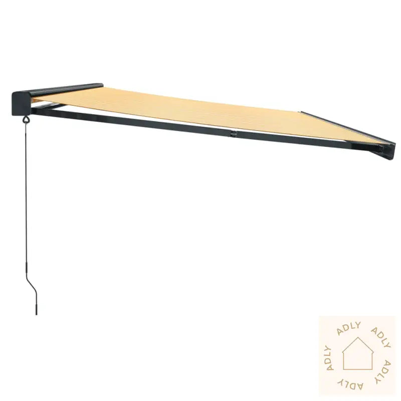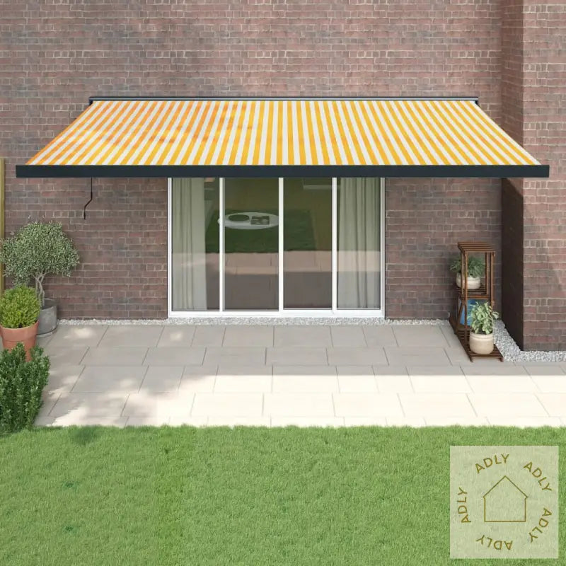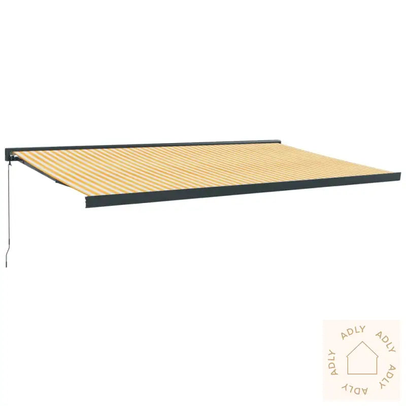 Markisens ramme er laget av robust, pulverlakkert aluminium. Dette gjør rammen både slitesterk og motstandsdyktig mot rust, slik at den holder seg fin sesong etter sesong. Stoffet er laget av 100% polyester med PU-belegg, noe som gir ekstra beskyttelse mot UV-stråler. Det betyr at familien og gjestene dine kan nyte hagen uten å bekymre seg for sterke solstråler.Den uttrekkbare markisen justeres enkelt etter behov: Rull den ut for å skape svalt skyggeområde, eller trekk den inn for å åpne opp rommet og slippe inn mer lys. Fleksibiliteten gjør dette til et supert supplement til både terrassen og balkongen.Veggmonteringen gjør det lett å feste markisen direkte på huset eller hytta med de medfølgende veggbrakettene, noe som sparer plass på uteområdet og gir en ryddig og stilren look – perfekt sammen med møbler til hjemmet og uteplassen.Med sitt enkle og moderne design passer denne uttrekkbare markisen like godt hjemme som i kommersielle områder, som restauranter, kafeer eller butikker. Den gir et ekstra løft til alt fra små balkonger til større hageområder, og blir raskt en naturlig del av ditt uterom sammen med hagemøbler.Farge: gul og hvitRammemateriale: Pulverlakkert aluminiumMarkisemateriale: Stoff (100% polyester) med PU-beleggStørrelse: 5 x 3 m (L x B)Montering kreves: jaLeveransen inneholder:1 x markise1 x ramme