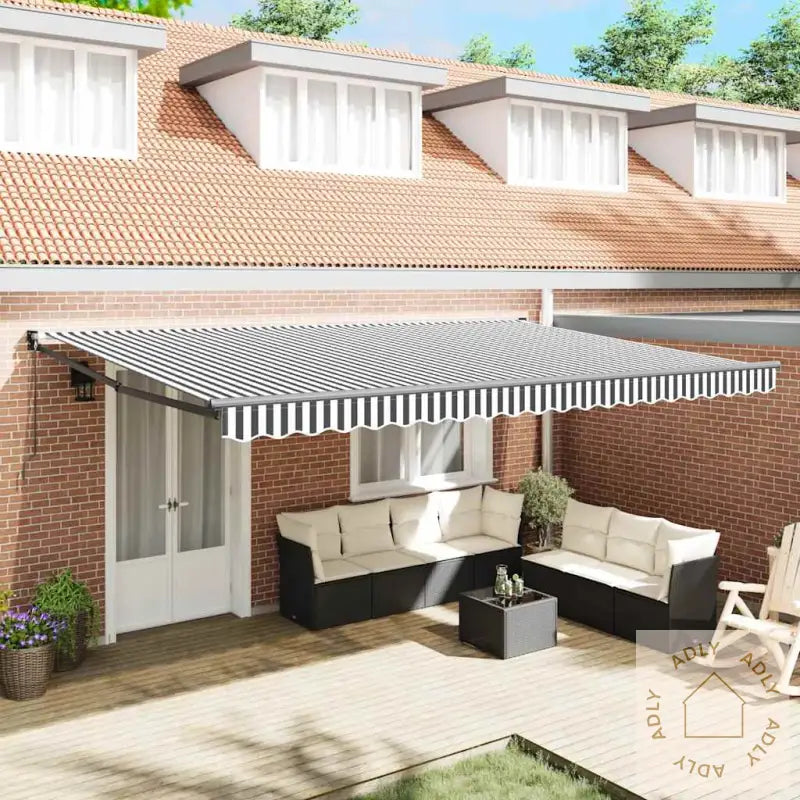 Nyt en kald drink, en smakfull godbit eller bare en god prat med venner på uteplassen din, mens du slapper av i skyggen under denne flotte uttrekkbare markisen! Den gir deg ikke bare et svalt tilfluktssted på varme dager, men oppgraderer hele uteområdet ditt – perfekt sammen med hagemøbler og som tillegg til møbler til hjemmet, uansett stil.