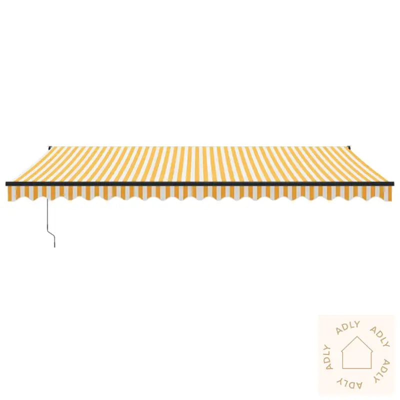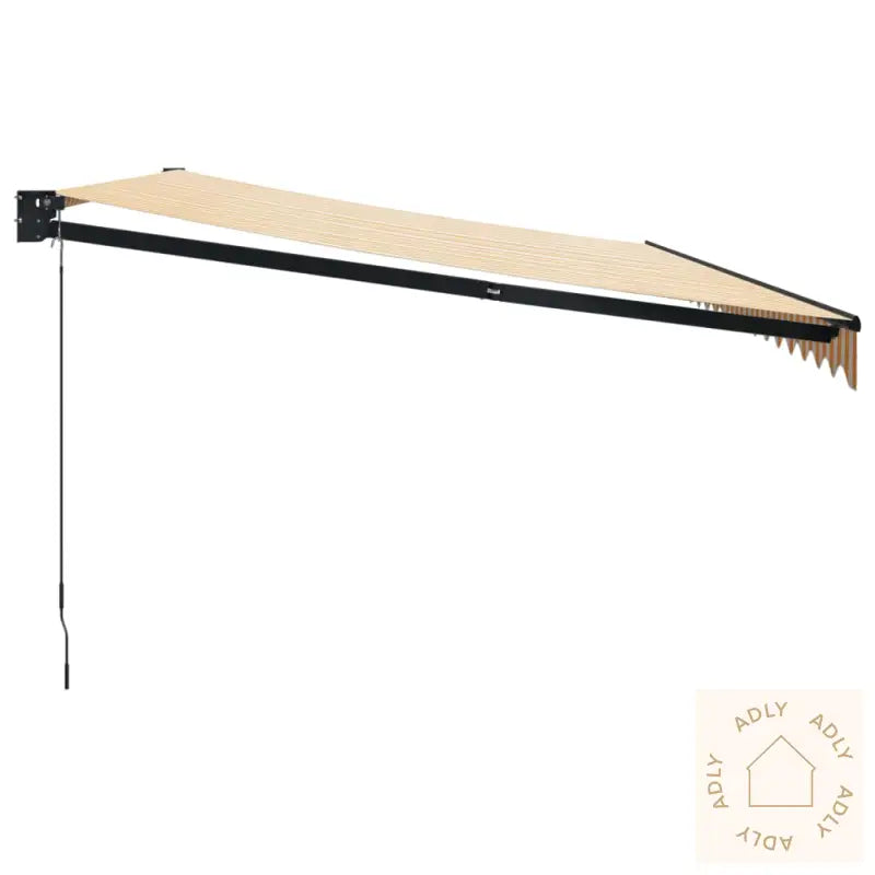 Bredt bruksområde: Den elegante og enkle designen gjør at denne uttrekkbare markisen passer inn nesten hvor som helst – enten det er på balkongen, terrassen, i hagen, på kafeer, restauranter eller butikker. Dette gir deg mange muligheter til å skjerme og gjøre uterommet mer innbydende for både hjemmet og kommersielle områder.Farger: Gul og hvitRamme: Pulverlakkert aluminiumMarkisemateriale: Stoff (100% polyester) med PU-beleggMål: 5 x 3 m (L x B)Krever montering: JaPakken inneholder:1 x uttrekkbar markise1 x ramme