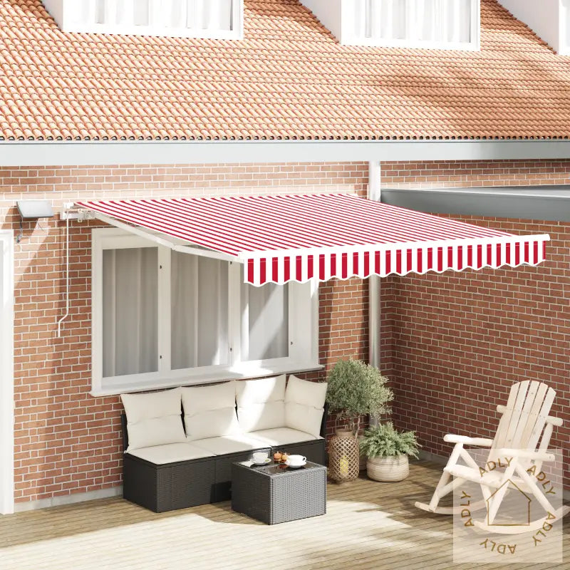 Farge: RødMønster: Stripete (Parallelle linjer i ulike bredder og farger)Form: RektangulærMateriale: Metall AluminiumFinish: Pulverlakkert for ekstra værbestandighetInnendørs/Utendørs: Kun utendørsRom: Garten und TerrassegMerke: Leveranse Inkluderer: Markiseduk, ramme og alt du trenger av monteringssettMontering nødvendig: JaAnbefalt antall personer for montering: 2 – gjør det hyggelig å montere sammen!Denne uttrekkbare markisen kombinerer et friskt, sommerlig utseende med topp funksjonalitet, perfekt hvis du setter pris på praktisk design og ønsker å matche markisen med andre stående hyller, hagemøbler eller lignende møbler på terrassen. Uansett om du drømmer om mer skygge for rolige morgener eller beskyttelse mot sommerregnet, får du her et produkt som gjør uterommet mer komfortabelt og innbydende.