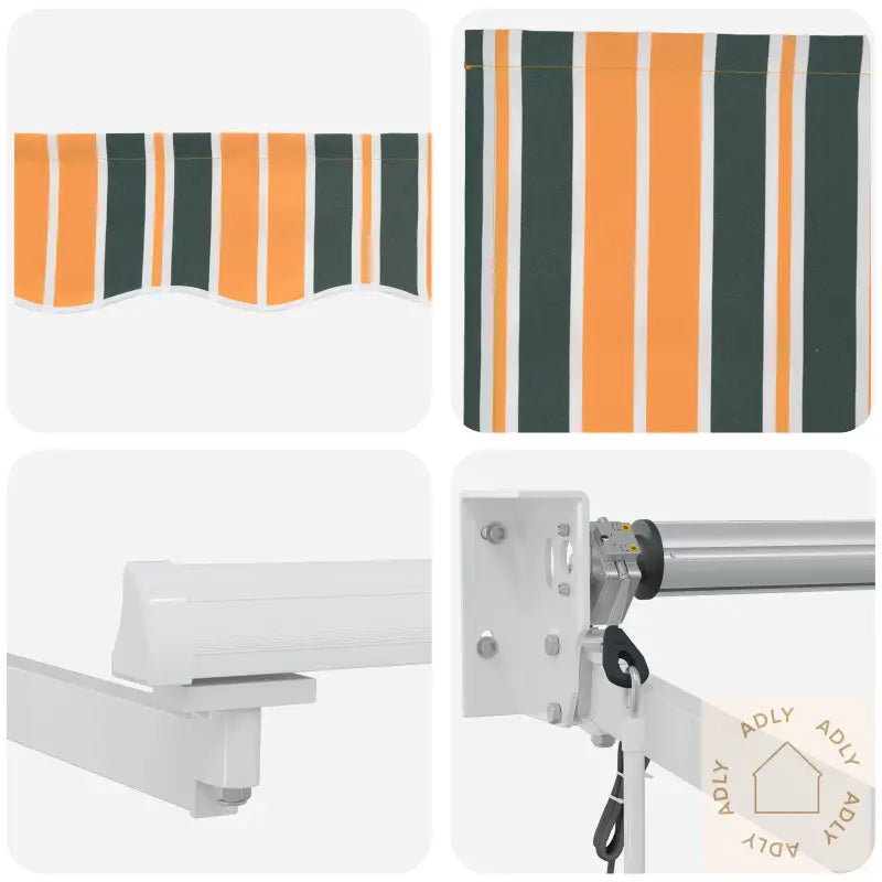Denne uttrekkbare markisen er en smart løsning for å beskytte uteplassen din mot sollys, og passer spesielt godt til deg som vil oppgradere balkongen eller terrassen med et friskt preg. De flotte gule og blå stripene gir umiddelbart uteområdet et livlig uttrykk, enten du samler venner eller slapper av alene. Samtidig gir markisen deg den skyggen du ønsker, slik at du kan slappe helt av selv på de varmeste sommerdagene.