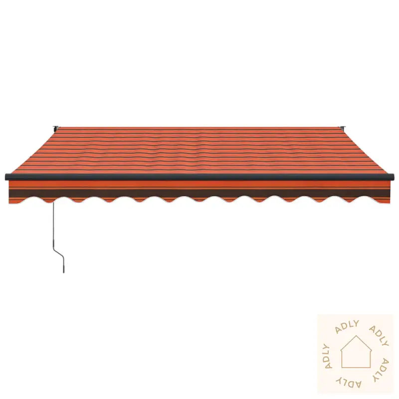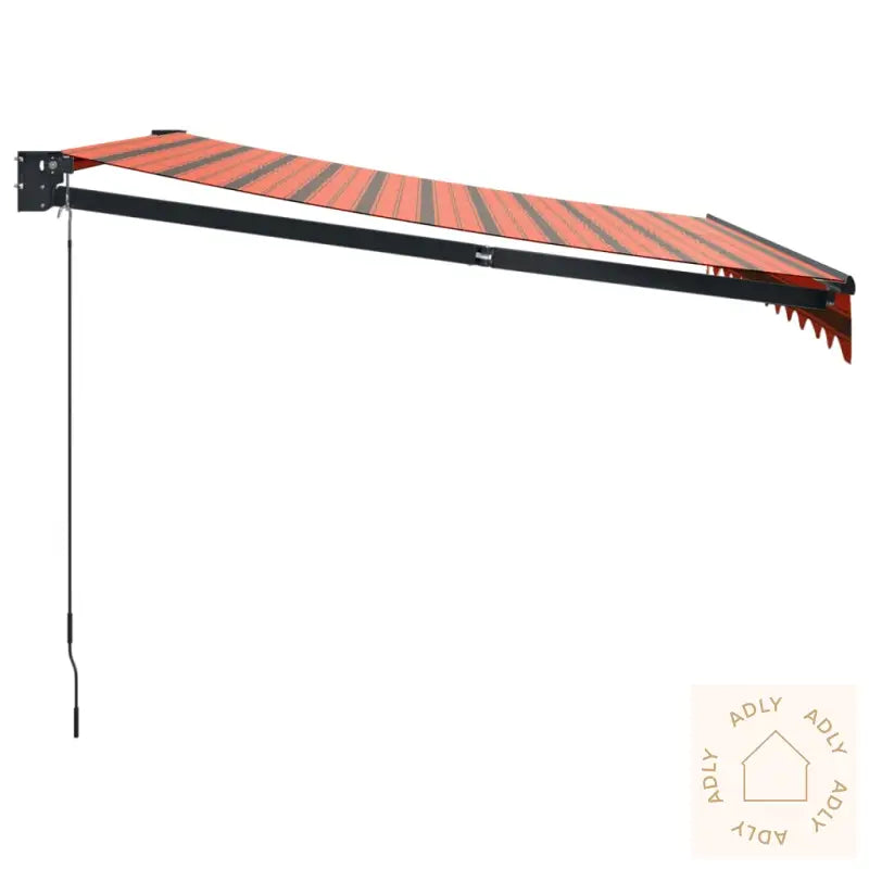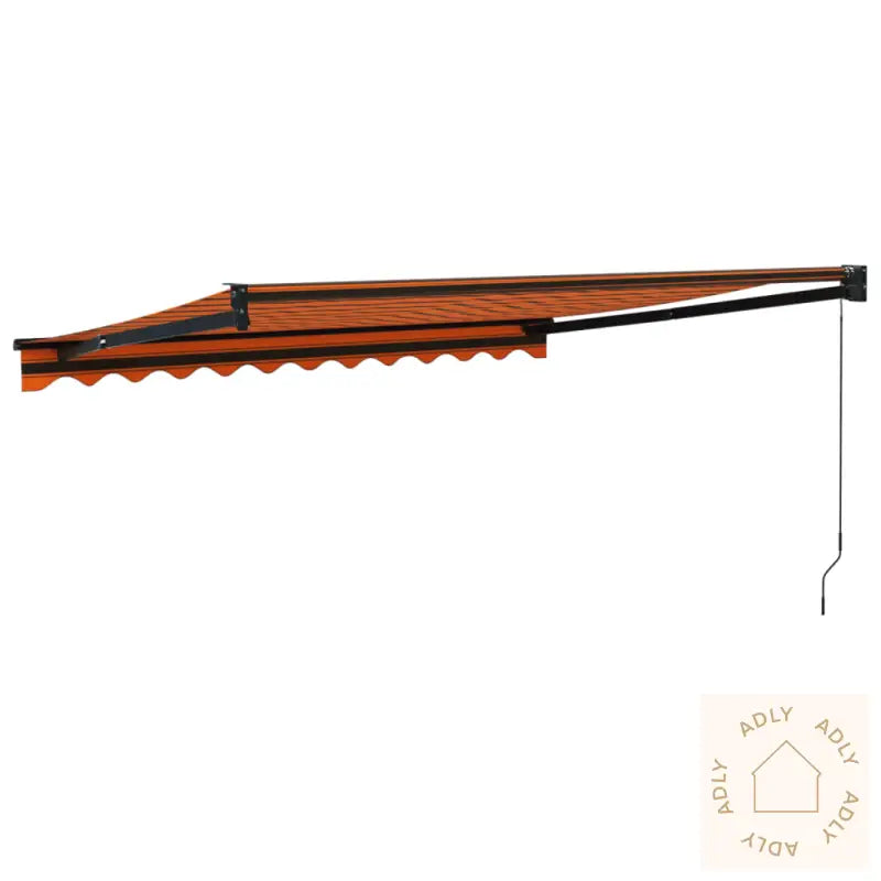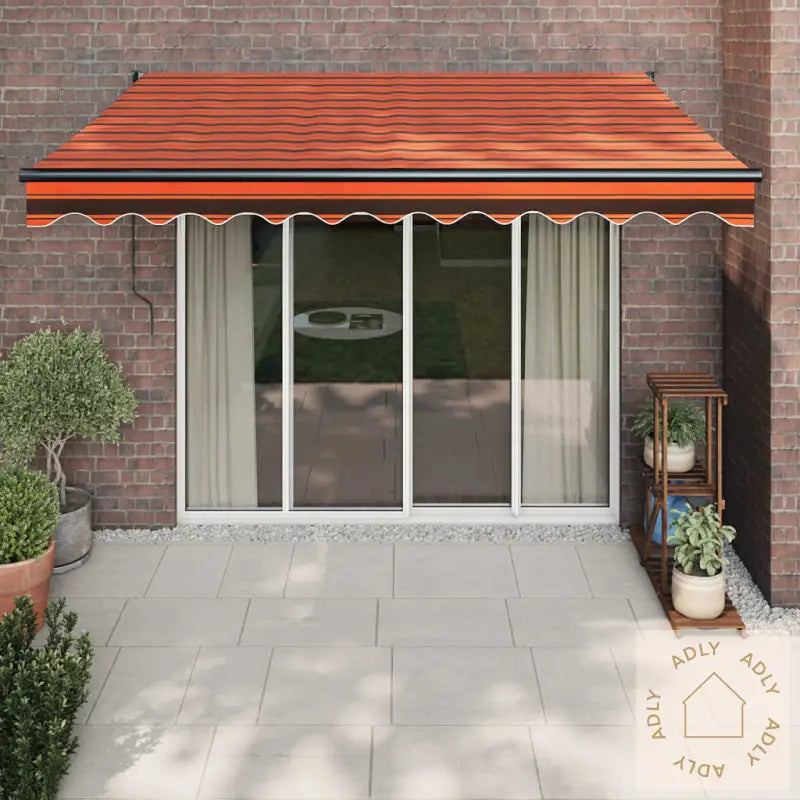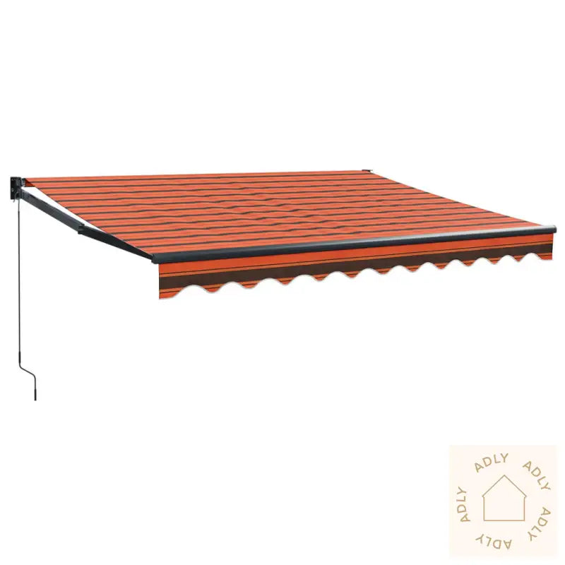 Markisens robuste ramme er produsert av pulverlakkert aluminium, kjent for sin styrke og lange levetid. Stoffet er laget av 100% polyester med PU-behandling, noe som gir god UV-beskyttelse. Her får du effektiv skjerming mot både sol og skadelige UV-stråler, til glede for både deg, familie og gjester.Den uttrekkbare markisen gir deg fleksibilitet gjennom hele dagen – trekk den ut når du vil ha skygge, og trekk den inn igjen når du vil nyte sola eller åpne opp utsikten. Dette gir deg maksimal kontroll uansett vær eller anledning.Takket være veggmontert design kan terrassemarkisen enkelt festes direkte på veggen med de medfølgende brakettene. Dette betyr at du sparer verdifull gulvplass og samtidig får et ryddig og moderne uttrykk.Den enkle og elegante utformingen gjør denne uttrekkbare markisen til et stilig innslag, enten du trenger skygge på balkongen, terrassen eller i hagen. Den passer også perfekt utenfor kafeer, restauranter og butikker – kort sagt alle steder du ønsker behagelig uteplass og en ekstra touch av komfort.Fargevalg: oransje og brun – farger som skaper en varm og innbydende atmosfære.Ramme: pulverlakkert aluminium for slitestyrke og lett vedlikehold.Markiseduk: 100% polyester med PU-belegg for langvarig bruk samt vann- og UV-motstand.Mål: 3,5 x 2,5 m (L x B) – gir god dekning for både små og større områder.Enkel montering kreves – alt du trenger følger med i pakken.Leveransen inneholder:1 x uttrekkbar markise1 x aluminiumsrammeUtvid uteplassen din med en kvalitetsmarkise som kombinerer slitesterkt pulverlakkert aluminium med smart design. En uttrekkbar markise gir deg muligheten til å nyte utesesongen enda mer, uansett om du bruker den sammen med hagemøbler eller som en naturlig del av dine møbler til hjemmet.