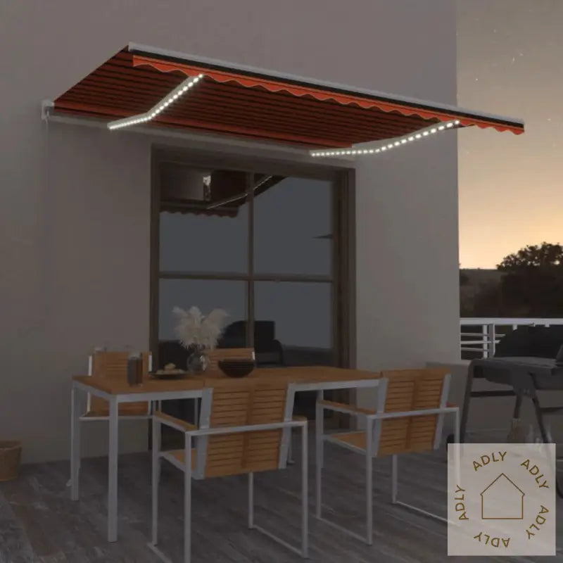 For ekstra stemning utover kvelden er denne terrasseløsningen utstyrt med solcelledrevne LED-lamper. Det betyr at du får energibesparende belysning, og du kan nyte utekvelder med møbler, bokhyller og stående hyller uten å måtte bekymre deg for dårlig lys eller høy strømregning. Markisen kommer i stilige oransje og brune nyanser, og med en ramme i klassisk hvit, matcher den lett ulike typer utemøbler og møbler til hjemmet. Oppgrader utesonen og skap et personlig og komfortabelt sted å samles med venner og familie med denne gjennomtenkte løsningen.