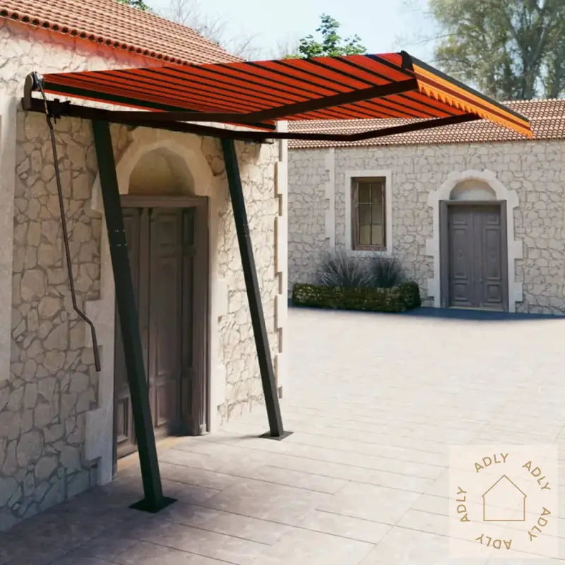Stoff i friske farger: oransje og brun, som gir liv til uterommet dittRamme i elegant antrasitt, et design som matcher de fleste moderne hagemøbler, bokhyller og stående hyllerKvalitetsmaterialer: pulverlakkert aluminium, jern, og stoff (100% polyester) med PU-beleggHele markisen måler 350 x 250 cm (L x B) – perfekt for større terrasser eller uteplasserStolpemål: 300 x 245 cm (B x H) for trygg støtte og holdbarhetVaren leveres flatpakket og krever enkel montering