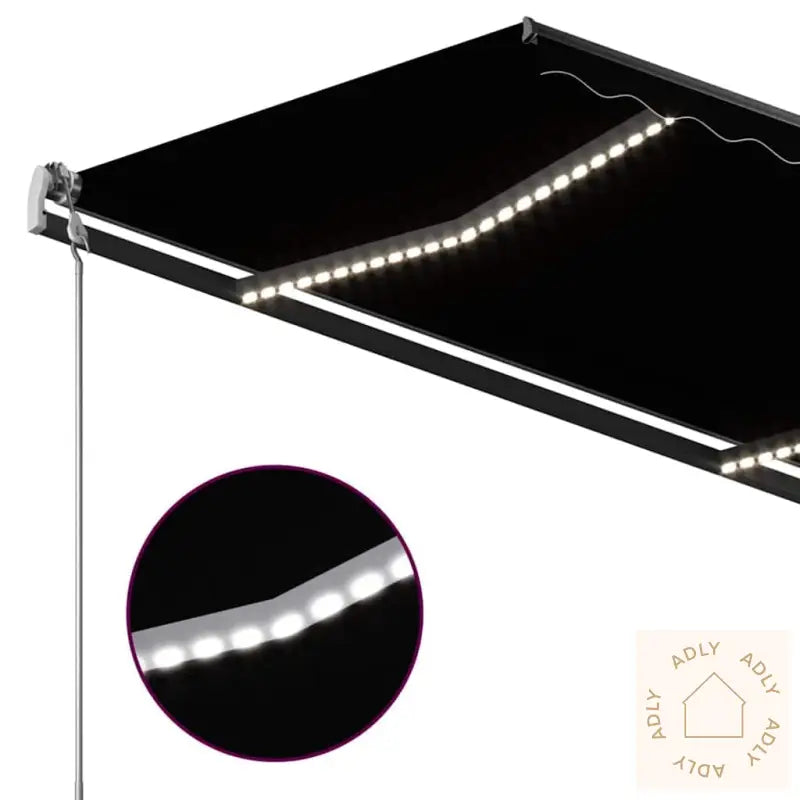 Både vinkel og høyde kan enkelt justeres etter dine egne behov, slik at du alltid får akkurat så mye skygge du ønsker. Med den lange håndsveiven kan du raskt og jevnt åpne eller trekke inn markisen når sola flytter seg eller temperaturen endrer seg. Når kvelden kommer og du vil forlenge uteoppholdet, sørger de soldrevne LED-lampene for energibesparende belysning med et koselig lys – ideelt for stemningsfulle grillkvelder eller rolig lesing ute, kanskje med en god bok fra et av husets bokhyller og stående hyller.