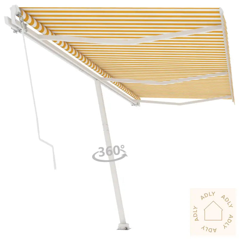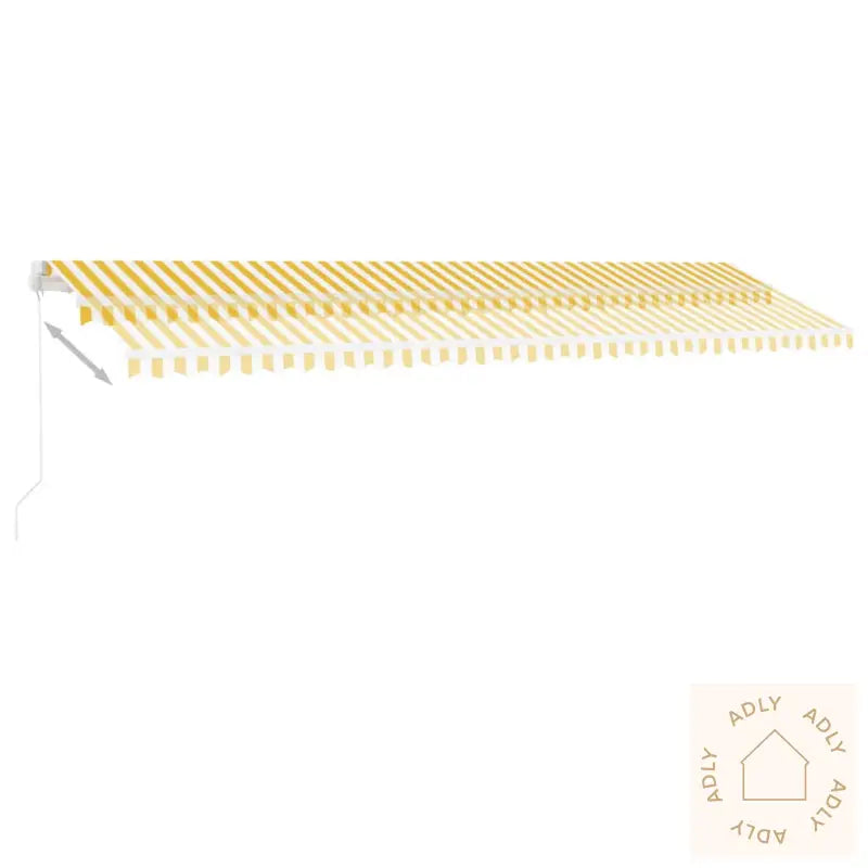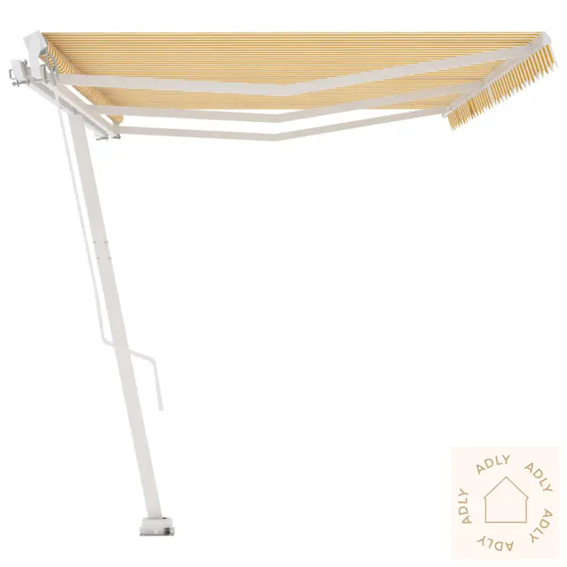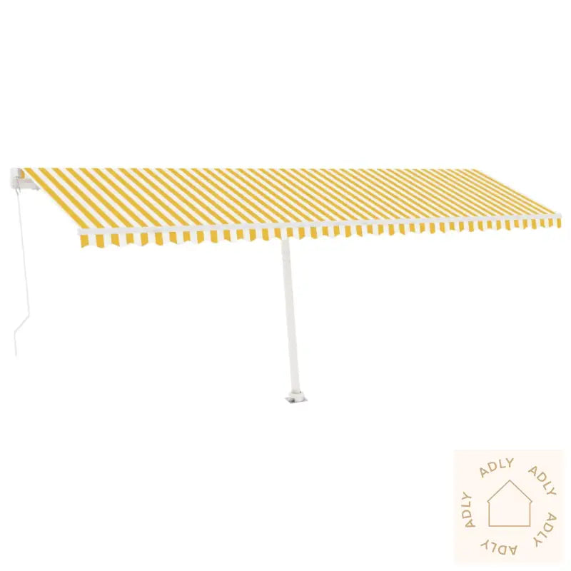 Farger: gul og hvitFarge ramme: hvitMaterialer: pulverlakkert aluminium, 100% polyesterstoff med PU-beleggSamlet mål: 600 x 350 cm (B x H)Mål stolpe: 600 x 245 cm (B x H)Montering kreves: ja