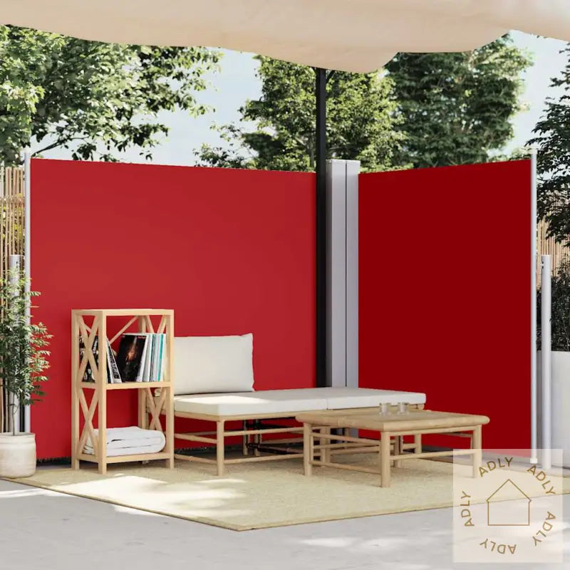 Farge: rødMaterialer: slitesterkt stoff (100% polyester) med PU-belegg, solid stål og lett aluminiumStørrelse: 180 x (0-600) cm (H x B)Uttrekkbar dobbeltsidig skjerm for ekstra dekningTrekkes automatisk tilbake for enkel brukLeveres komplett med monteringsutstyr og to solide innleggMontering nødvendigMed denne uteromsløsningen løfter du både funksjonen og stilen på hagen eller terrassen, og får samtidig et produkt som tåler norske forhold. Perfekt for deg som elsker å nyte uteplassen, og ønsker deg utendørsmøbler og tilbehør som varer lenge.