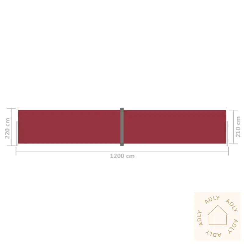 Farge: rødMaterialer: stoff (100% polyester) med PU-belegg, stål, aluminiumMål: 220 x (0-1200) cm (H x B)Uttrekkbar, dobbeltsidig skjermTrekkes automatisk tilbakeInkludert monteringsutstyr og 2 innleggMontering kreves: ja