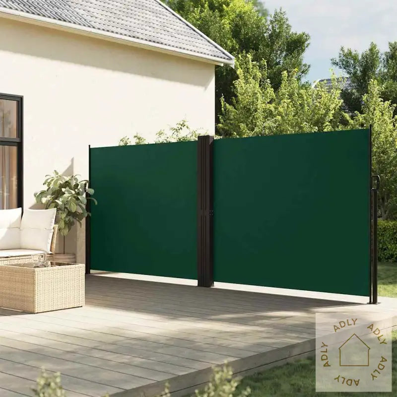 Vann- og UV-bestandig: Hageskjermen er laget av slitesterk 100 % polyester med polyuretanbelegg (PU), noe som gir både pusteevne og solid beskyttelse mot vind, sol, vann og UV-stråler. Egner seg supert til norsk klima, og bidrar til å skjerme for nysgjerrige blikk eller sterkt sollys, slik at du kan bruke uteplassen din mer komfortabelt gjennom hele sesongen.Praktisk design: Sidemarkisen har et smart uttrekkbart system hvor duken automatisk rulles tilbake i beskyttelseskassetten når håndtaket kobles fra stolpen. Dette gjør det enkelt å trekke ut skjermen når du trenger den, og ta den inn igjen når du vil ha full utsikt. Lett å bruke i både travle og rolige stunder.Enkel installasjon: Stolpene kan sikkert festes til bakken for ekstra stabilitet og gir god varighet selv på vindfulle dager. Alt nødvendig monteringstilbehør følger med, så du trenger ikke kjøpe noe ekstra – dette gjør oppsettet raskt og stressfritt.Bredt bruksområde: Markisens allsidighet gjør at du like gjerne kan bruke den utendørs i hagen, på terrassen, verandaen eller balkongen, som innendørs på kontoret eller i garderoben hvis du trenger å dele av soner eller skape romfølelse. Praktisk for deg som ønsker fleksible løsninger til både hjem og arbeidsplass, og som allerede har valgt moderne møbler, hagemøbler eller til og med bokhyller og stående hyller.Farge: mørkegrønn – trendy og passer perfekt sammen med naturlige eller fargerike møbler både inne og uteMateriale stoff: 100 % polyester med PU-belegg for ekstra holdbarhetMateriale ramme: robust stål, noe som sikrer lang levetid og stabilitetMål: 180 x 600 cm (H x B) – gir rikelig med skjerming uten å ta for mye plass på uteplassenMontering kreves: jaAlt nødvendig monteringstilbehør er inkludert