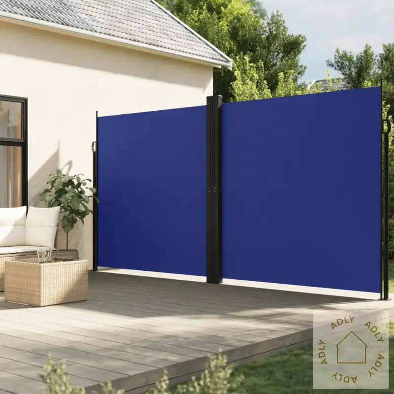 Vann- og UV-bestandig: Hageskjermen er laget av slitesterkt 100 % polyesterstoff med et robust polyuretan-belegg (PU), noe som gir en kombinasjon av god pusteevne og solid beskyttelse. Dette gjør markisen ideell både for å skjerme mot intens sol, UV-stråler og plutselige regnbyger – akkurat det du trenger for å kunne nyte dine møbler og uteplassen i trygge omgivelser året rundt.Praktisk design: Det uttrekkbare systemet lar deg enkelt justere hvor mye skjerming du ønsker. Når du ikke trenger mer skjerm, ruller duken automatisk inn igjen ved å slippe håndtaket fra stolpen – praktisk og plassbesparende, spesielt på mindre terrasser eller blant hagemøbler og stående hyller.Enkel installasjon: Det følger med monteringstilbehør slik at du på en trygg måte kan feste stolpene i bakken for ekstra stabilitet. Dette gjør at sidemarkisen står stødig selv på vindfulle dager, og passer perfekt uansett om du har en stor terrasse eller en liten balkong med smarte møbler og bokhyller.Bredt bruksområde: Sidemarkisen er utrolig allsidig. Den passer like bra utendørs i bakgården, på terrassen, i hagen, på verandaen og balkongen, som innendørs. Bruk den for å dele av områder på kontoret, klinikken, studioet eller til å lage ekstra veggplass – perfekt om du skal kombinere skjerming med åpne romløsninger eller skape en egen sone blant møbler til hjemmet, bokhyller og annet interiør.Farge: blåMateriale stoff: 100 % polyester med PU-beleggMateriale ramme: stål og aluminiumMål: 200 x 1200 cm (H x B)Montering kreves: jaMonteringstilbehør er inkludert