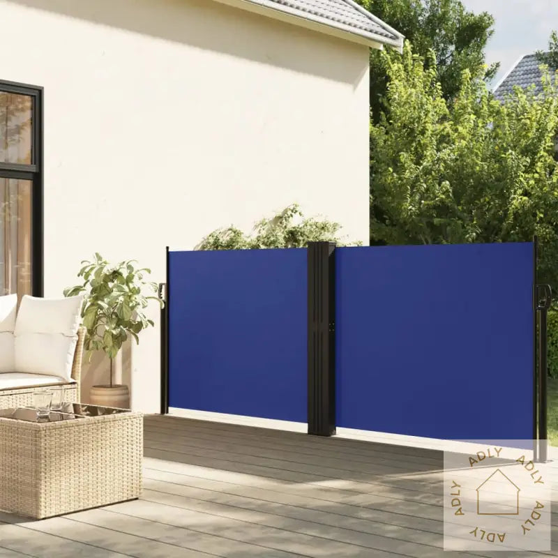 Vann- og UV-bestandig: Hageskjermen er laget av slitesterkt 100 % polyester med et PU-belegg (polyuretan), så duken tåler både sterk sol, regn og vind. Materialet beskytter effektivt mot UV-stråling samtidig som det er pustende, noe som gir en behagelig atmosfære selv på varme dager.Praktisk design: Den smarte uttrekkbare mekanismen lar deg enkelt dra ut skjermen når du trenger privatliv eller beskyttelse mot vind – og den ruller automatisk inn igjen når håndtaket fjernes fra stolpen. Dette sørger for fleksibel bruk uten unødvendig styr, perfekt for travle hverdager.Enkel installasjon: Stolpene er lette å feste til bakken ved hjelp av det medfølgende monteringstilbehøret. Dermed får du en stabil og sikker skjerm som holder seg godt selv i vær og vind. Det er bare å følge de enkle instruksjonene og montere på ønsket sted.Bredt bruksområde: Sidemarkisen passer utmerket både til utendørs og innendørs bruk. Enten du vil ha en stilfull løsning i bakgården, på terrassen, i hagen, på verandaen eller balkongen, fungerer den også supert innendørs på kontoret, i klinikken, studioet eller garderoben hvis du trenger å skjerme et område eller skape midlertidig veggplass. Allsidigheten gjør den til et smart valg blant møbler til hjemmet, enten ute eller inne.Farge: blåMateriale stoff: 100 % polyester med PU-beleggMateriale ramme: stål og aluminiumMål: 140 x 1200 cm (H x B)Alt nødvendig monteringstilbehør følger medMontering kreves