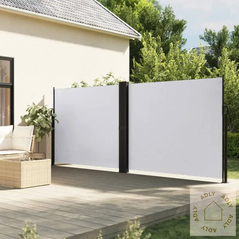 Vann- og UV-bestandig: Skjermen er laget av 100 % polyester med et slitesterkt polyuretan-belegg (PU) som sørger for god pusteevne og beskytter effektivt mot vind, sol, vann og skadelige UV-stråler. Dette gjør at markisen holder seg pen lenge og gir pålitelig beskyttelse enten du slapper av alene eller inviterer gjester ut.Praktisk og brukervennlig design: Det uttrekkbare designet lar deg raskt trekke ut skjermen når du trenger det – og når du har fått nok skjerming, ruller den seg automatisk tilbake med et enkelt klikk på håndtaket. Superenkel i bruk og veldig praktisk for travle dager.Enkel installasjon: De solide stolpene og smart monteringstilbehør gjør at du raskt kan sette opp markisen der du ønsker, og festes trygt til bakken så den står stødig også i litt vær. Montering går raskt og problemfritt – og alt du trenger følger med, slik at du kan nyte ditt nye utendørsmøbel på kort tid.Bredt bruksområde: Denne allsidige sidemarkisen passer ikke bare perfekt utendørs på terrassen, i hagen eller på balkongen – du kan også bruke den innendørs! Lag smart romdeling på kontoret, i klinikken, studioet eller garderoben. Suveren løsning for å gi fleksibel skjerming eller for å skape ekstra veggplass akkurat der du trenger det.Farge: Hvit – tidløs og enkel å matche med dine andre utendørsmøbler eller hagemøblerMateriale stoff: 100 % polyester med PU-belegg for lang holdbarhet og enkel vedlikeholdMateriale ramme: Solid stål som tåler utemiljøetMål: 160 x 1000 cm (H x B) – nok plass til å skjerme en stor flateKrever enkel montering – alt nødvendig tilbehør er inkludert