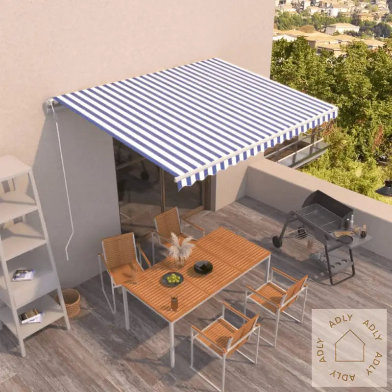 Farger: blå og hvitFarge ramme: hvitMaterialer: pulverlakkert aluminium, 100% polyesterstoff med PU-beleggSamlet mål: 450 x 350 cm (B x H)Spenning: 230V~ , 0,95A; 50/60 HzEffekt: 226 WMoment: 40 NmHastighet: 13 rpmMontering kreves: jaMed denne moderne uttrekkbare markisen får du ikke bare bedre beskyttelse for deg og dine utemøbler, men også et løft for hele uterommet ditt. Kombiner gjerne med andre smarte møbler til hjemmet, som bokhyller og stående hyller, for å skape en helhetlig stil – både inne og ute!