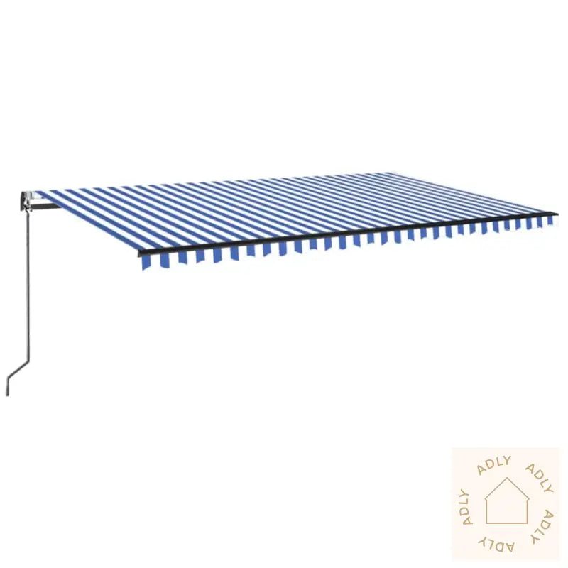 Farge stoff: blå og hvitFarge ramme: antrasittMaterialer: pulverlakkert aluminium, 100% polyesterstoff med PU-beleggSamlet mål: 500 x 350 cm (B x H)Spenning: 230V~ , 0,95A; 50/60 HzEffekt: 226 WMoment: 40 NmHastighet: 13 rpmLED-spenning: 12 VMontering kreves: ja
