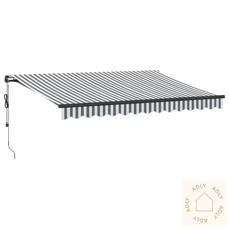Bredt bruksområde: Den uttrekkbare markisen har et tidløst, stilrent design som glir rett inn hjemme eller i kommersielle miljøer. Den fungerer like bra over balkonger, terrasser og hager som på restauranter, kafeer eller butikker, og den forbedrer både utseende og brukervennlighet på uteplassen din.Farge stoff: Antrasitt og hvitFarge ramme: AntrasittMaterialer: Pulverlakkert aluminium, polyester (100 %) med PU-beleggStørrelse: 350 x 250 cm (L x B) – perfekt for å dekke store uteområderVann- og smussavvisende overflate gjør vedlikeholdet enkeltElektriske spesifikasjoner: 230 V~, 0,95 A; 50 HzEffekt: 155 WMoment: 20 NmHastighet: 13 rpmMontering: Ja, montering kreves