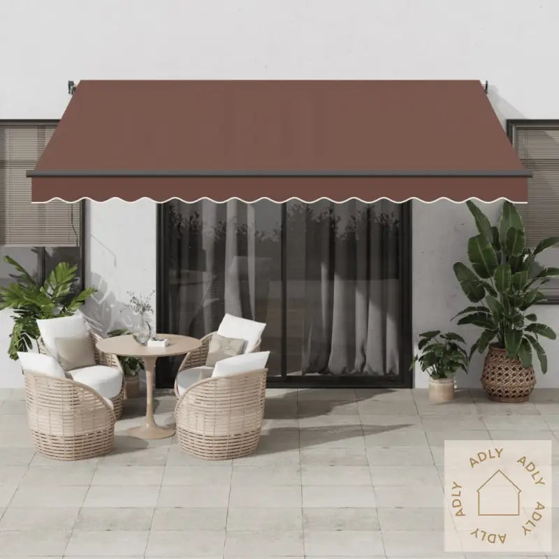Den solide rammen i pulverlakkert aluminium gjør markisen ekstra robust og slitesterk. Pulverlakkeringen hindrer rust og slitasje over tid – perfekt for norske værforhold. Stoffet er av 100 % polyester med PU-belegg, noe som gir god UV-beskyttelse og beskytter både deg, familien og gjestene mot solens sterke stråler. Dette er særlig viktig når du ønsker å ta vare på både helse og utseende på uteplassen og hagemøbler.Markisen kommer med automatisk funksjon, slik at du enkelt kan justere den ved hjelp av den medfølgende fjernkontrollen – det gir deg maksimal bekvemmelighet når du vil få skygge eller sol på terrassen uten anstrengelse.Både vinkel og høyde kan enkelt tilpasses akkurat slik du ønsker, enten du vil skjerme for lav kveldssol eller åpne opp for mer lys. Den langhåndssveiven gjør det lett å trekke ut eller inn markisen manuelt, så du får full fleksibilitet i bruken.Allsidig og elegant design gjør denne uttrekkbare markisen til et naturlig supplement blant møbler til hjemmet eller i kommersielle uterom. Markisen passer på balkong, terrasse, i hagen, hos restauranter, kafeer, butikker og mange andre steder der du trenger både stil og funksjonalitet. Perfekt hvis du vil skape et beskyttet miljø rundt utemøbler eller serveringsplasser.Stoff i stilig brunfarge gir et tidsriktig preg til uterommet ditt.Rammen har moderne antrasittfarge for en elegant look som matcher de fleste hagemøbler.Materialvalg: pulverlakkert aluminium og 100 % polyesterstoff med PU-belegg sikrer lang levetid og lett vedlikehold.Store dimensjoner på 400 x 350 cm (L x H) der du får rikelig med skygge over et stort areal – ideelt for sosiale samlinger og avslapping.Vann- og smussavvisende stoff gjør rengjøring lett og sørger for at markisen holder seg pen lenger.Elektrisk tilkobling: 230 V~, 0,95 A; 50 HzMotorstyrke: 155 W gir jevn og stabil bevegelse hver gang.Kraftig moment på 20 Nm, hastighet 13 rpm gir rask og sikker betjening.Enkel montering kreves, slik at du raskt kan ta markisen i bruk og nyte effektene selv.