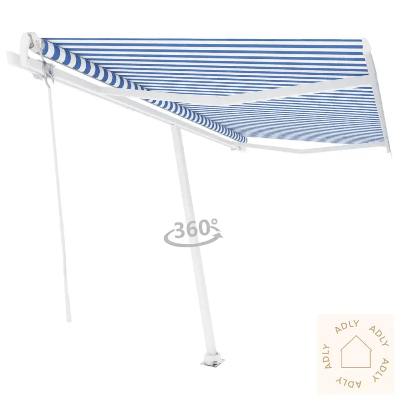 Farger: blå og hvitFarge ramme: hvitMaterialer: pulverlakkert aluminium, 100% polyesterstoff med PU-beleggSamlet mål: 450 x 300 cm (B x H)Mål stolpe: 450 x 245 cm (B x H)Spenning: 230V~ , 0,95A; 50/60 HzEffekt: 226 WMoment: 40 NmHastighet: 13 rpmMontering kreves: ja