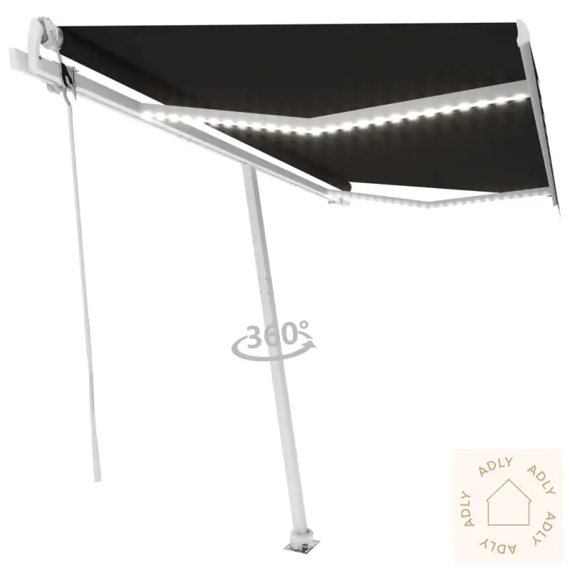 Basen på markisen kan roteres hele 360 grader, noe som gir ekstra fleksibilitet hvis du skal skjerme for solen i løpet av dagen. Markisen styres enten med fjernkontroll for enkel bruk, eller med en lang håndsveiv som gir jevn og presis kontroll. Den innebygde vindsensoren sørger for sikkerhet ved å lukke markisen automatisk på vindfulle dager, slik at både produktet og hagemøblene dine er bedre beskyttet. For stemningsfulle kvelder er også LED-lamper inkludert, som gir energibesparende belysning til uterommet ditt.