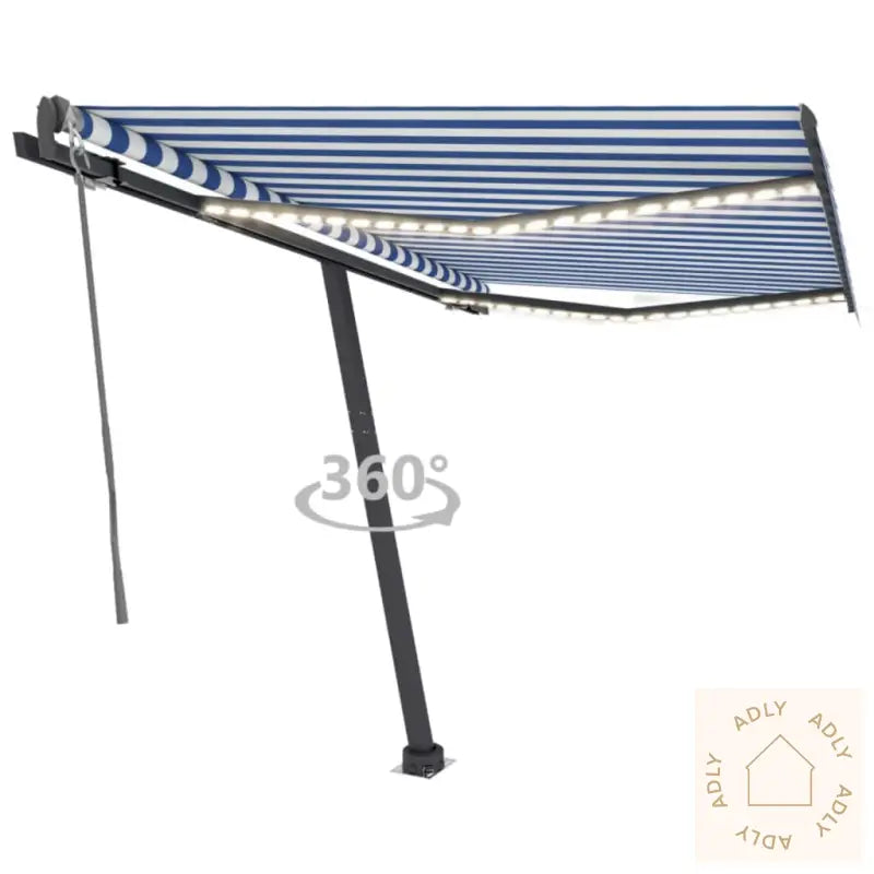 Den robuste basen kan roteres hele 360 grader, så du kan tilpasse markisen etter behov, uansett hvordan hagen eller terrassen din ser ut. Med den automatiske uttrekksfunksjonen styrer du markisen enkelt via fjernkontrollen som følger med, mens den lange sveiven gir deg full kontroll om du foretrekker det. For ekstra bekymringsfri bruk er den også utstyrt med en vindsensor – når vinden blir for sterk trekker markisen seg automatisk inn igjen. På kvelden gir de innebygde LED-lampene behagelig, energibesparende belysning, så du kan nyte utelivet litt lenger. Alt dette gjør denne uttrekkbare markisen til et fleksibelt og elegant valg til hagemøbler eller som en praktisk løsning sammen med dine møbler til hjemmet.