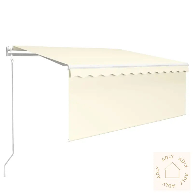 Den automatiske uttrekkbare markisen kan du åpne og lukke enkelt med den medfølgende fjernkontrollen, som gir ekstra bekvemmelighet. Ønsker du manuell betjening, følger det også med en lang håndsveiv som gjør det jevnt og smidig å styre markisen. Markisen skjermer effektivt mot sterk sol og gir privatliv i hagen, eller på terrassen – og beskytter møbler til hjemmet mot solbleking og fukt. Den store størrelsen gir utmerket skygge, og gjør at uterommet blir enda mer innbydende når du inviterer venner eller vil ha litt tid for deg selv.