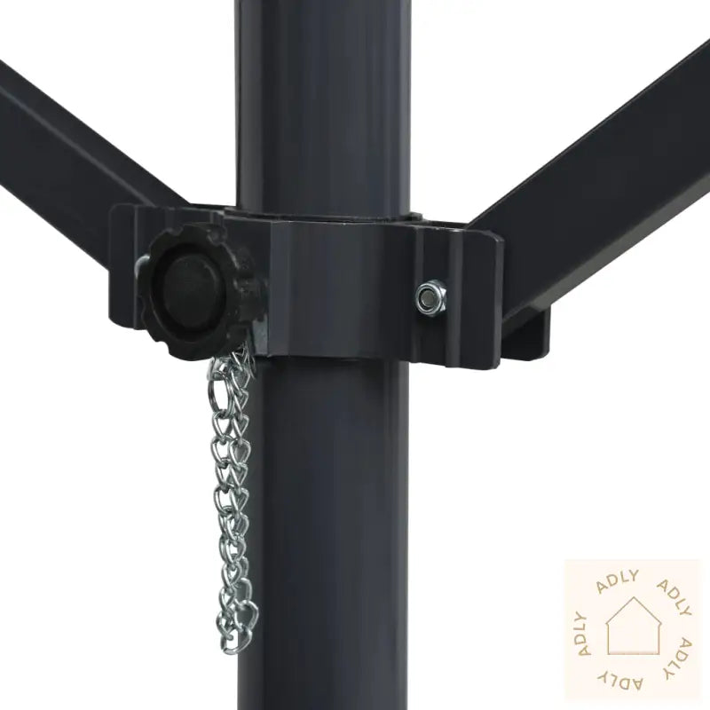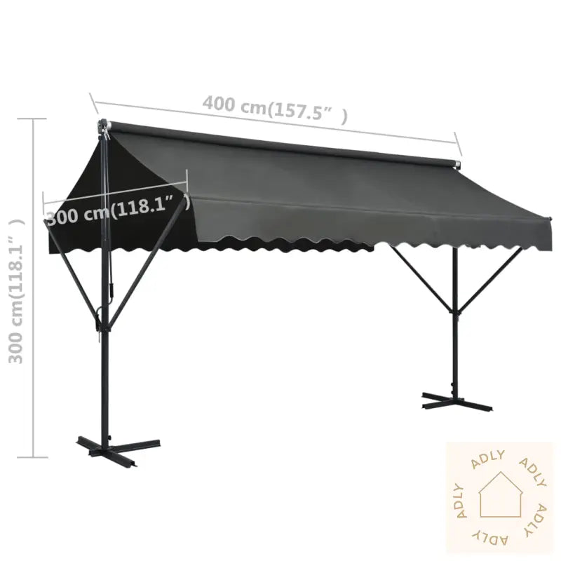Farge: antrasittMaterialer: pulverlakkert stålramme, 100% polyester med PU-beleggMål: 400 x 300 x 300 cm (L x B x H)Stålbase: 90 x 60 cm (L x B)UV- og værbestandigVann-, smuss- og støvavvisendeMontering kreves: ja