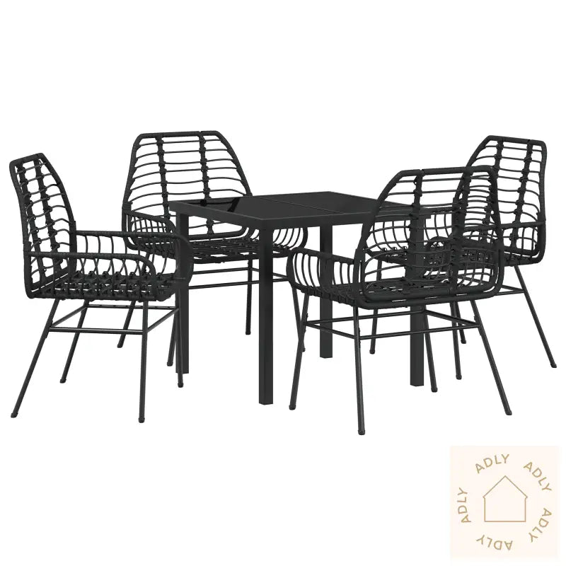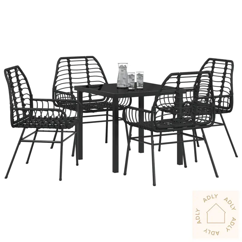 Antall Deler: 5Farge: SvartForm: RektangulærMateriale: Syntetisk Poly RattanFinish: Pulverlakkert for ekstra beskyttelseInnendørs/Ute: Kun utendørs brukTrekk Inkludert: NeiRom: Passer perfekt på hage, terrasse eller balkongBatterier Inkludert: NeiHodegavl Inkludert: NeiKapasitet: 110 kgMaksimalt Antall Personer: 4Maksimalt Vekt: 110 kgBenhøyde: 44.00 cmSittedybde: 48.00 cmSetekapasitet: 1Gynger: NeiStige: NeiMerke:Leveransen Inneholder: 4 x Stol, 1 x BordMontering Kreves: JaAnbefalt Antall Personer for Montering: 1