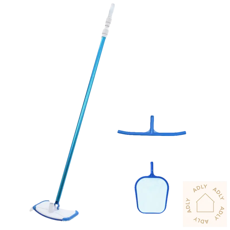 Dette multifunksjonelle vedlikeholdsettet til basseng er en praktisk løsning for alle som ønsker et rent og innbydende basseng i hagen. Rengjøringssettet er laget av solide, holdbare og korrosjonsbestandige materialer, noe som sikrer lang levetid selv under krevende forhold. Den store, vektede støvsugeren av ABS har en beskyttende støtfanger av vinyl, som forhindrer skader på bassengveggen, samtidig som den brede konstruksjonen og sidebørster sørger for effektiv rengjøring av både bunn og vegger. Skimmeren, med sin avtakbare og gjenbrukbare oppsamlingspose, gjør det enkelt å samle opp småpartikler, rusk og blader, slik at bassenget alltid fremstår klart.