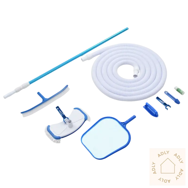 Materiale: ABSMed en hvit slangeDiameter slange: 38 mmLengde slange: 7,5 mAluminiumsstang med justerbar høyde fra 1,2 m til 3,6 mStor, hvit, vektet støvsuger med beskyttende støtfanger av vinyl og sidebørsterAvtakbar og gjenbrukbar oppsamlingspose for rusk og bladerFor bruk med alle frittstående bassenger unntatt bassenger med stålveggerLeveranse inkluderer:1 x støvsuger1 x skimmer1 x veggbørste1 x skrubbebørste1 x aluminiumsstang1 x erstatningshåndtak av polymer1 x termometer1 x teststrimmel1 x hvit slange