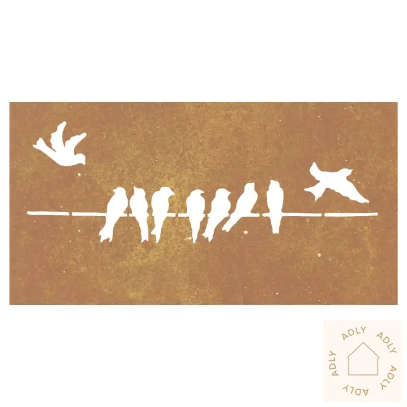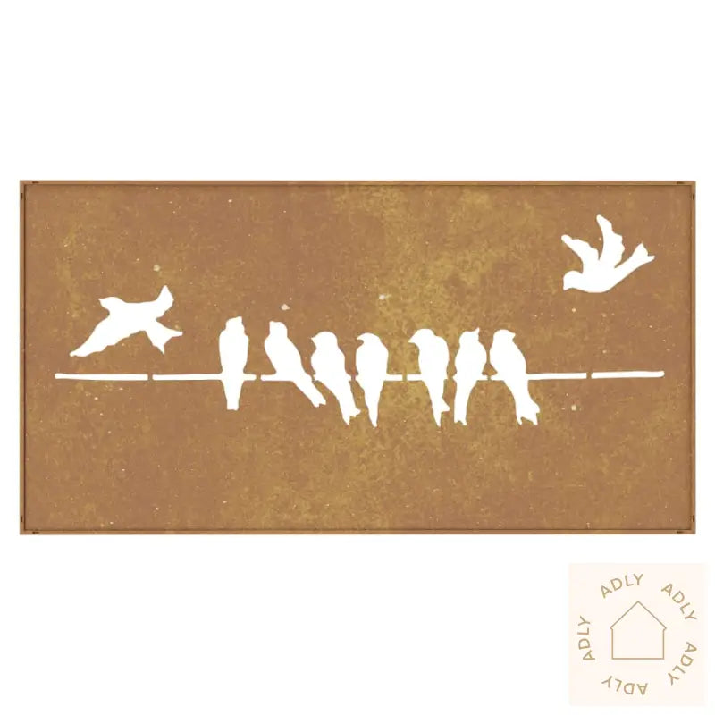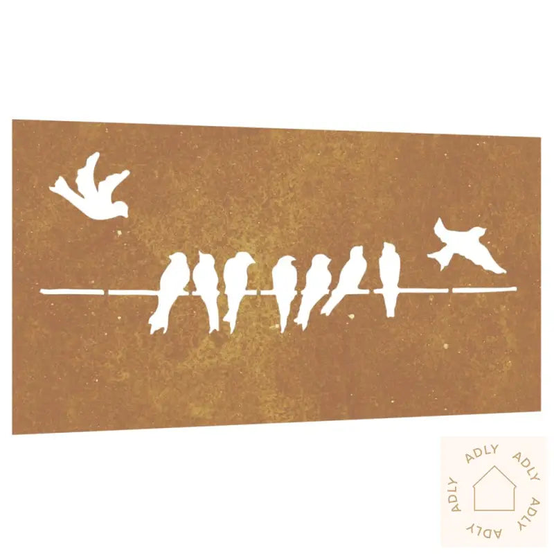Slitesterkt materiale: Laget av solid cortenstål, også kjent som forhåndsrustet stål. Dette materialet er laget for å vare – det utvikler en vakker, rusten overflate når det utsettes for vær og vind, noe som gir beskyttelse mot videre korrosjon. Du trenger ikke bekymre deg for maling eller hyppig vedlikehold. Den varme, oransjebrune tonen gir et kunstnerisk uttrykk og gjør dekorasjonen til en naturlig del av uterommet. Dette er perfekt for deg som ønsker noe vedlikeholdsfritt og samtidig ønsker effektfulle detaljer ute eller inne.Utsøkt design: Dekorplaten har en detaljert utskjæring i fuglemønster, som gjør hele hageområdet mer innbydende. Hullene lar sollys skinne gjennom og skaper et spennende spill av skygger utover dagen, og gir et unikt preg til alt fra terrasseveggen til sonen ved siden av hagemøblene dine.Enkel montering: Veggdekorasjonen har forhåndslagde monteringshull på baksiden, så du kan enkelt henge den opp der det passer best for deg – enten på vegg, gjerdet eller kanskje på en stående hylle i drivhuset.Godt å vite: